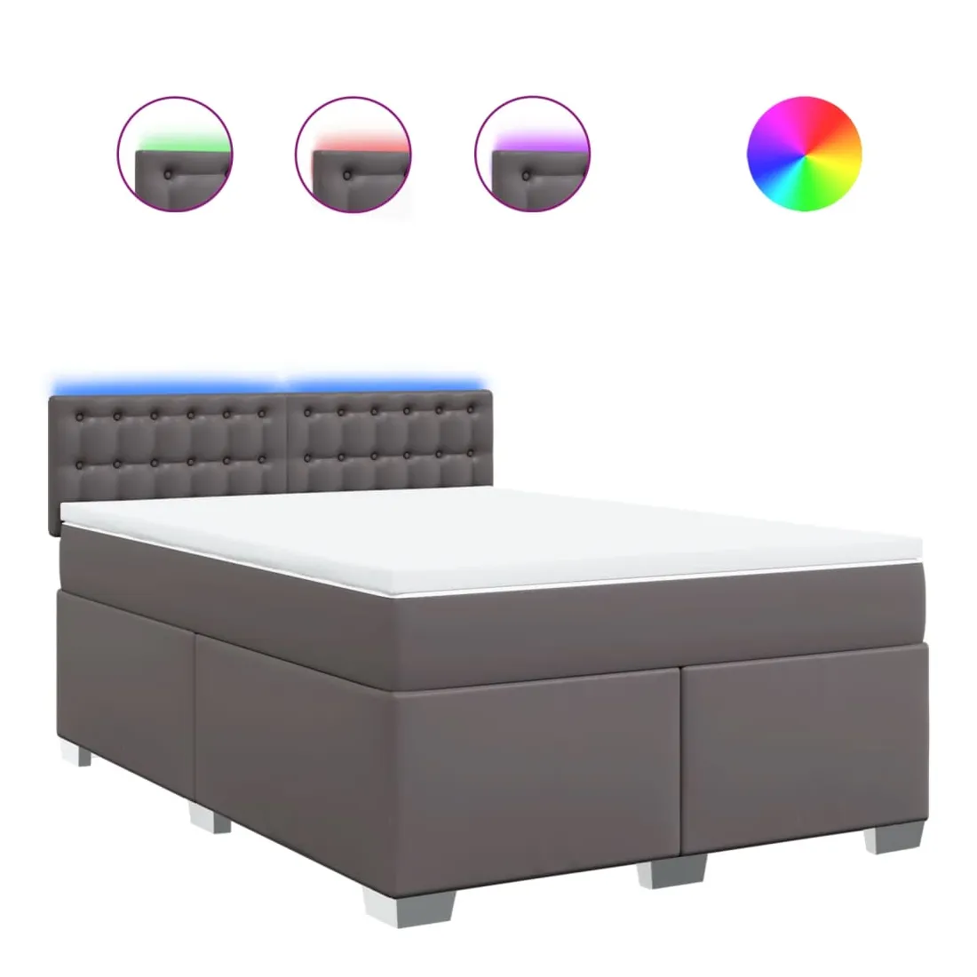 Utilisez ce lit à sommier pour profiter d'une nuit de sommeil réparatrice ! Il vous offre une relaxation maximale et un sommeil agréable. Longue durée de vie et entretien facile : le similicuir est un matériau très durable qui résiste aux taches, ce qui le rend facile à nettoyer avec un chiffon humide. Sa surface lisse lui confère un aspect élégant qui ressemble à celui du cuir véritable.Matelas à ressorts ensachés : ce matelas à ressorts ensachés comporte des ressorts ensachés individuels qui fonctionnent indépendamment pour offrir un soutien personnalisé en réagissant uniquement à la pression exercée dans chaque zone. Cette conception empêche « l'enroulement » et réduit le transfert de mouvement par rapport aux matelas traditionnels à ressorts ouverts. Chaque ressort ensaché soutient le corps individuellement.Lumières LED pour une ambiance agréable : ce lit est équipé de lumières LED qui peuvent être facilement réglées pour créer un spectacle lumineux personnalisé. Vous pouvez personnaliser les modes, les couleurs et la luminosité pour améliorer l'ambiance de votre espace intérieur.Surmatelas confortable : ce surmatelas améliore le soutien et le confort grâce à sa surface douce et respirante, tout en prolongeant la durée de vie de votre matelas. Sa housse amovible permet un lavage facile, ce qui facilite l'entretien. Bon à savoir :Ce produit est doté d'un connecteur USB qui nécessite une source d'alimentation USB de 5V certifiée (non incluse).Pour des raisons d'hygiène, le matelas ne peut pas être retourné si l'emballage est retiré ou ouvert.Seule la partie avec un symbole de ciseaux peut être coupée et seule la partie avec l'USB continuera à fonctionner comme avant.