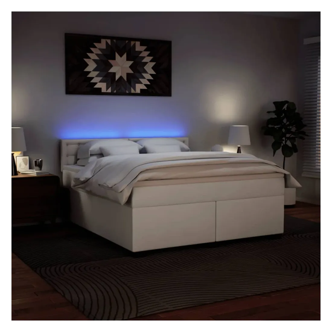 Utilisez ce lit à sommier pour profiter d'une nuit de sommeil réparatrice ! Il vous offre une relaxation maximale et un sommeil agréable. Longue durée de vie et entretien facile : le similicuir est un matériau très durable qui résiste aux taches, ce qui le rend facile à nettoyer avec un chiffon humide. Sa surface lisse lui confère un aspect élégant qui ressemble à celui du cuir véritable.Matelas à ressorts ensachés : ce matelas à ressorts ensachés comporte des ressorts ensachés individuels qui fonctionnent indépendamment pour offrir un soutien personnalisé en réagissant uniquement à la pression exercée dans chaque zone. Cette conception empêche « l'enroulement » et réduit le transfert de mouvement par rapport aux matelas traditionnels à ressorts ouverts. Chaque ressort ensaché soutient le corps individuellement.Lumières LED pour une ambiance agréable : ce lit est équipé de lumières LED qui peuvent être facilement réglées pour créer un spectacle lumineux personnalisé. Vous pouvez personnaliser les modes, les couleurs et la luminosité pour améliorer l'ambiance de votre espace intérieur.Surmatelas confortable : ce surmatelas améliore le soutien et le confort grâce à sa surface douce et respirante, tout en prolongeant la durée de vie de votre matelas. Sa housse amovible permet un lavage facile, ce qui facilite l'entretien. Bon à savoir :Ce produit est doté d'un connecteur USB qui nécessite une source d'alimentation USB de 5V certifiée (non incluse).Pour des raisons d'hygiène, le matelas ne peut pas être retourné si l'emballage est retiré ou ouvert.Seule la partie avec un symbole de ciseaux peut être coupée et seule la partie avec l'USB continuera à fonctionner comme avant.