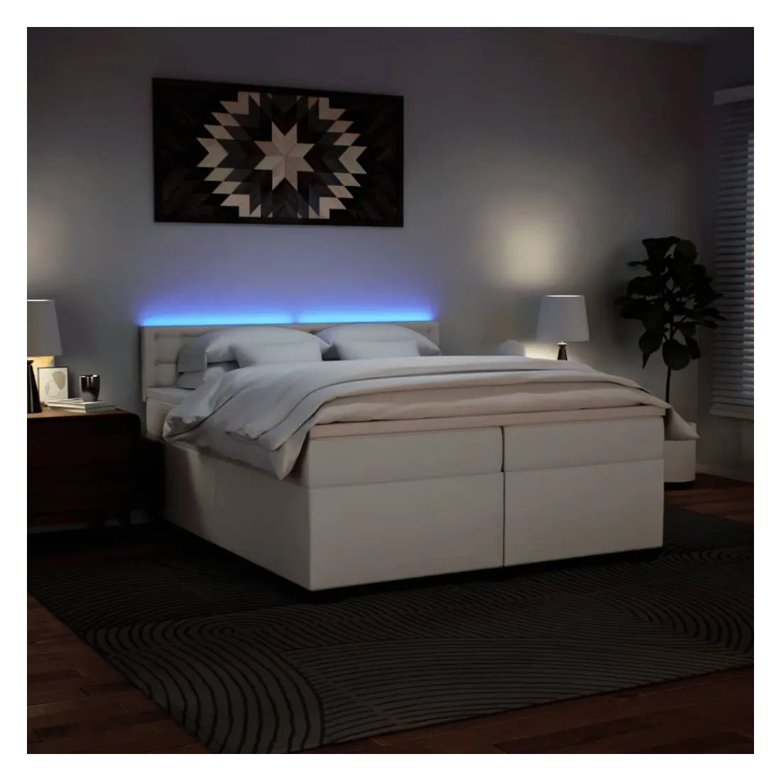 Utilisez ce lit à sommier pour profiter d'une nuit de sommeil réparatrice ! Il vous offre une relaxation maximale et un sommeil agréable. Longue durée de vie et entretien facile : le similicuir est un matériau très durable qui résiste aux taches, ce qui le rend facile à nettoyer avec un chiffon humide. Sa surface lisse lui confère un aspect élégant qui ressemble à celui du cuir véritable.Matelas à ressorts ensachés : ce matelas à ressorts ensachés comporte des ressorts ensachés individuels qui fonctionnent indépendamment pour offrir un soutien personnalisé en réagissant uniquement à la pression exercée dans chaque zone. Cette conception empêche « l'enroulement » et réduit le transfert de mouvement par rapport aux matelas traditionnels à ressorts ouverts. Chaque ressort ensaché soutient le corps individuellement.Lumières LED pour une ambiance agréable : ce lit est équipé de lumières LED qui peuvent être facilement réglées pour créer un spectacle lumineux personnalisé. Vous pouvez personnaliser les modes, les couleurs et la luminosité pour améliorer l'ambiance de votre espace intérieur.Surmatelas confortable : ce surmatelas améliore le soutien et le confort grâce à sa surface douce et respirante, tout en prolongeant la durée de vie de votre matelas. Sa housse amovible permet un lavage facile, ce qui facilite l'entretien. Bon à savoir :Ce produit est doté d'un connecteur USB qui nécessite une source d'alimentation USB de 5V certifiée (non incluse).Pour des raisons d'hygiène, le matelas ne peut pas être retourné si l'emballage est retiré ou ouvert.Seule la partie avec un symbole de ciseaux peut être coupée et seule la partie avec l'USB continuera à fonctionner comme avant.