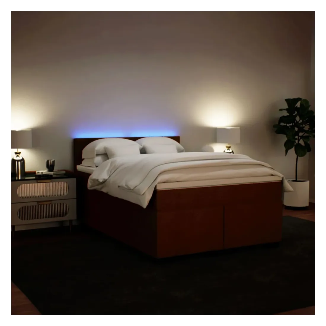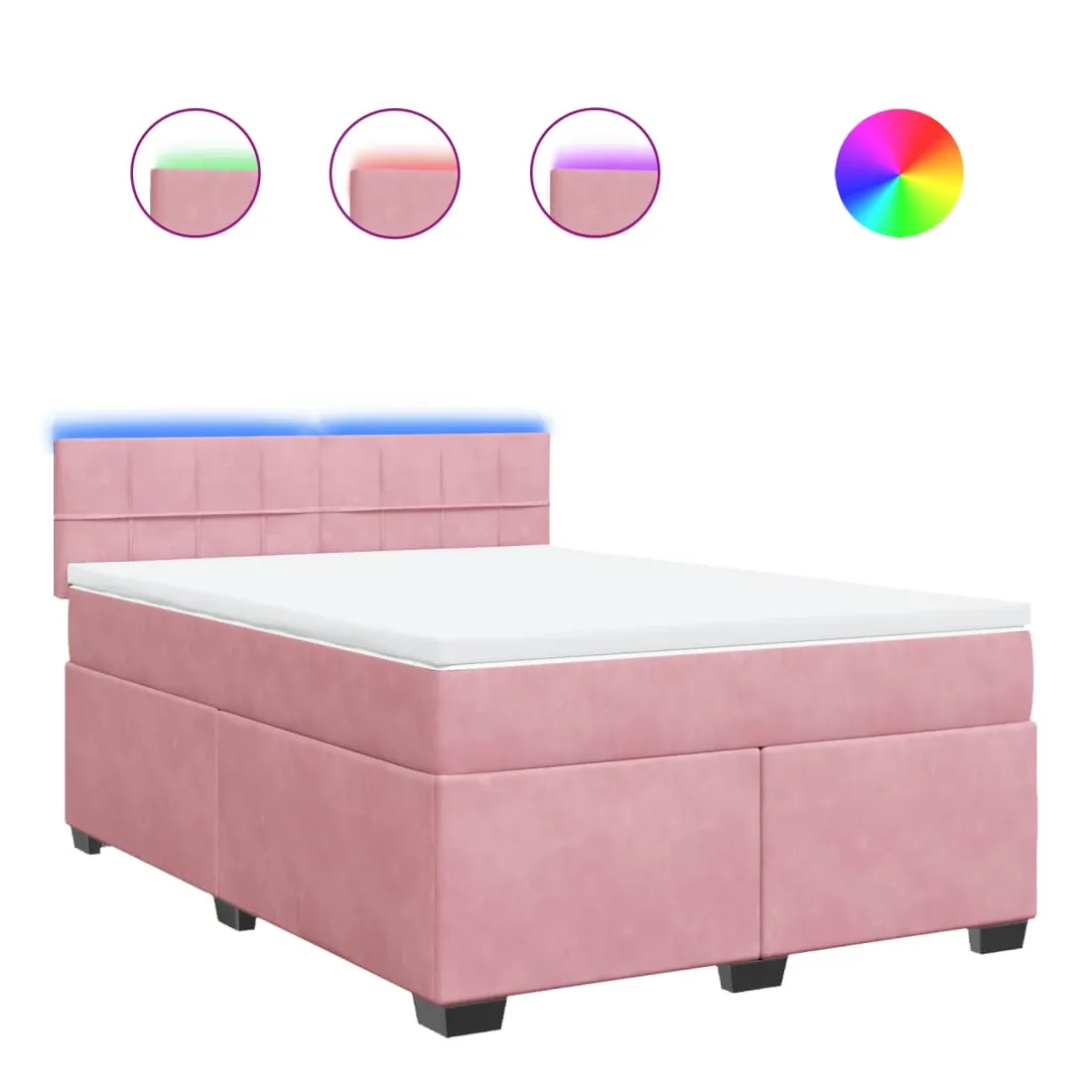 Utilisez ce lit à sommier pour profiter d'une nuit de sommeil réparatrice ! Il vous offre une relaxation maximale et un sommeil agréable. Matériau doux et confortable : le tissu en velours présente une surface douce et lisse qui offre une sensation agréable contre la peau, vous apportant chaleur et confort ultime.Matelas à ressorts ensachés : ce matelas à ressorts ensachés comporte des ressorts ensachés individuels qui fonctionnent indépendamment pour offrir un soutien personnalisé en réagissant uniquement à la pression exercée dans chaque zone. Cette conception empêche « l'enroulement » et réduit le transfert de mouvement par rapport aux matelas traditionnels à ressorts ouverts. Chaque ressort ensaché soutient le corps individuellement.Lumières LED pour une ambiance agréable : ce lit est équipé de lumières LED qui peuvent être facilement réglées pour créer un spectacle lumineux personnalisé. Vous pouvez personnaliser les modes, les couleurs et la luminosité pour améliorer l'ambiance de votre espace intérieur.Surmatelas confortable : ce surmatelas améliore le soutien et le confort grâce à sa surface douce et respirante, tout en prolongeant la durée de vie de votre matelas. Sa housse amovible permet un lavage facile, ce qui facilite l'entretien. Bon à savoir :Ce produit est doté d'un connecteur USB qui nécessite une source d'alimentation USB de 5V certifiée (non incluse).Pour des raisons d'hygiène, le matelas ne peut pas être retourné si l'emballage est retiré ou ouvert.Seule la partie avec un symbole de ciseaux peut être coupée et seule la partie avec l'USB continuera à fonctionner comme avant.