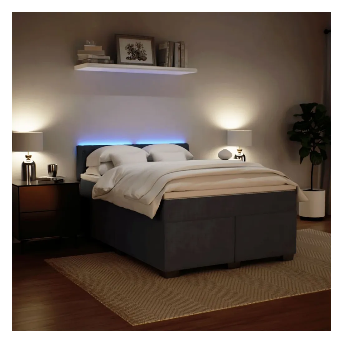 Utilisez ce lit à sommier pour profiter d'une nuit de sommeil réparatrice ! Il vous offre une relaxation maximale et un sommeil agréable. Matériau doux et confortable : le tissu en velours présente une surface douce et lisse qui offre une sensation agréable contre la peau, vous apportant chaleur et confort ultime.Matelas à ressorts ensachés : ce matelas à ressorts ensachés comporte des ressorts ensachés individuels qui fonctionnent indépendamment pour offrir un soutien personnalisé en réagissant uniquement à la pression exercée dans chaque zone. Cette conception empêche « l'enroulement » et réduit le transfert de mouvement par rapport aux matelas traditionnels à ressorts ouverts. Chaque ressort ensaché soutient le corps individuellement.Lumières LED pour une ambiance agréable : ce lit est équipé de lumières LED qui peuvent être facilement réglées pour créer un spectacle lumineux personnalisé. Vous pouvez personnaliser les modes, les couleurs et la luminosité pour améliorer l'ambiance de votre espace intérieur.Surmatelas confortable : ce surmatelas améliore le soutien et le confort grâce à sa surface douce et respirante, tout en prolongeant la durée de vie de votre matelas. Sa housse amovible permet un lavage facile, ce qui facilite l'entretien. Bon à savoir :Ce produit est doté d'un connecteur USB qui nécessite une source d'alimentation USB de 5V certifiée (non incluse).Pour des raisons d'hygiène, le matelas ne peut pas être retourné si l'emballage est retiré ou ouvert.Seule la partie avec un symbole de ciseaux peut être coupée et seule la partie avec l'USB continuera à fonctionner comme avant.