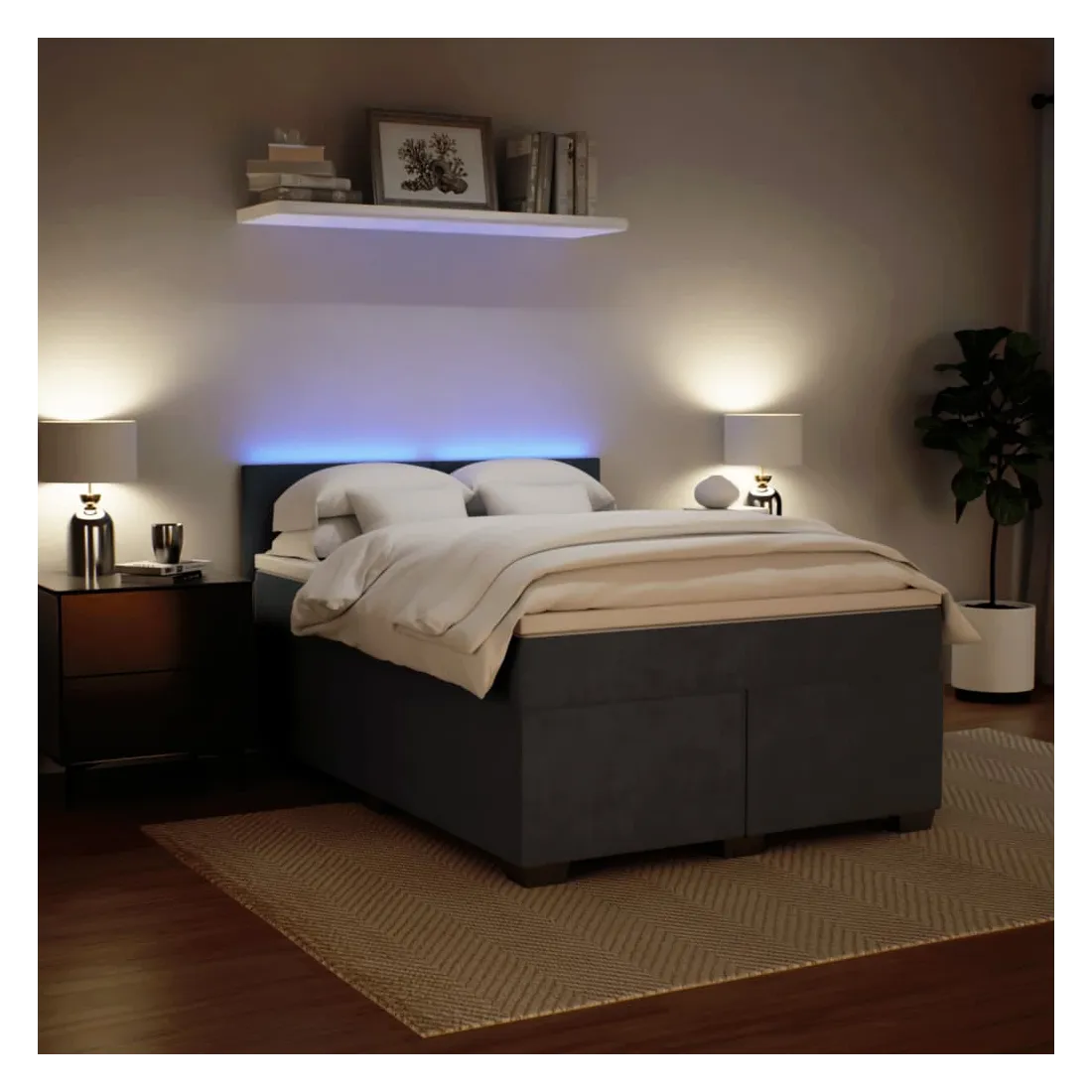 Utilisez ce lit à sommier pour profiter d'une nuit de sommeil réparatrice ! Il vous offre une relaxation maximale et un sommeil agréable. Matériau doux et confortable : le tissu en velours présente une surface douce et lisse qui offre une sensation agréable contre la peau, vous apportant chaleur et confort ultime.Matelas à ressorts ensachés : ce matelas à ressorts ensachés comporte des ressorts ensachés individuels qui fonctionnent indépendamment pour offrir un soutien personnalisé en réagissant uniquement à la pression exercée dans chaque zone. Cette conception empêche « l'enroulement » et réduit le transfert de mouvement par rapport aux matelas traditionnels à ressorts ouverts. Chaque ressort ensaché soutient le corps individuellement.Lumières LED pour une ambiance agréable : ce lit est équipé de lumières LED qui peuvent être facilement réglées pour créer un spectacle lumineux personnalisé. Vous pouvez personnaliser les modes, les couleurs et la luminosité pour améliorer l'ambiance de votre espace intérieur.Surmatelas confortable : ce surmatelas améliore le soutien et le confort grâce à sa surface douce et respirante, tout en prolongeant la durée de vie de votre matelas. Sa housse amovible permet un lavage facile, ce qui facilite l'entretien. Bon à savoir :Ce produit est doté d'un connecteur USB qui nécessite une source d'alimentation USB de 5V certifiée (non incluse).Pour des raisons d'hygiène, le matelas ne peut pas être retourné si l'emballage est retiré ou ouvert.Seule la partie avec un symbole de ciseaux peut être coupée et seule la partie avec l'USB continuera à fonctionner comme avant.