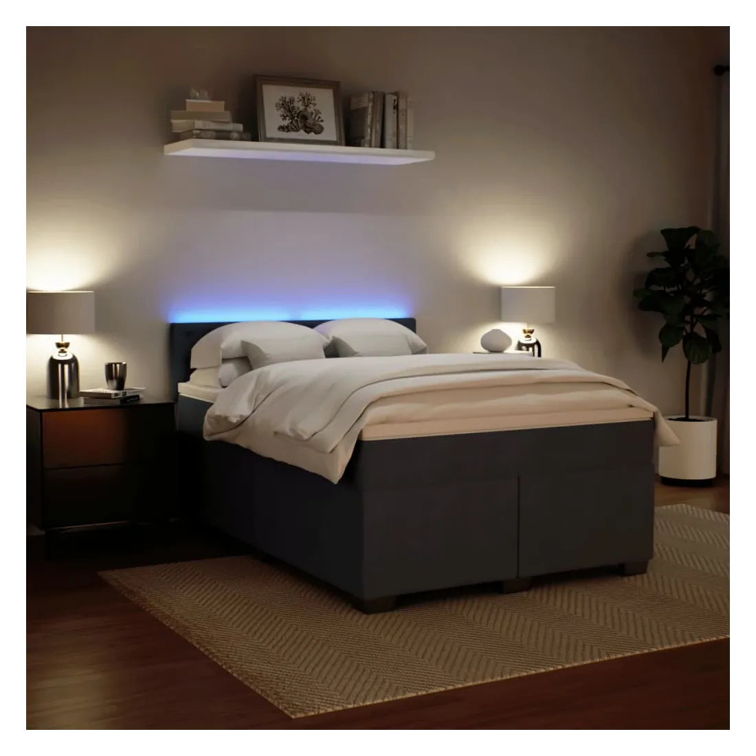 Utilisez ce lit à sommier pour profiter d'une nuit de sommeil réparatrice ! Il vous offre une relaxation maximale et un sommeil agréable. Matériau doux et confortable : le tissu en velours présente une surface douce et lisse qui offre une sensation agréable contre la peau, vous apportant chaleur et confort ultime.Matelas à ressorts ensachés : ce matelas à ressorts ensachés comporte des ressorts ensachés individuels qui fonctionnent indépendamment pour offrir un soutien personnalisé en réagissant uniquement à la pression exercée dans chaque zone. Cette conception empêche « l'enroulement » et réduit le transfert de mouvement par rapport aux matelas traditionnels à ressorts ouverts. Chaque ressort ensaché soutient le corps individuellement.Lumières LED pour une ambiance agréable : ce lit est équipé de lumières LED qui peuvent être facilement réglées pour créer un spectacle lumineux personnalisé. Vous pouvez personnaliser les modes, les couleurs et la luminosité pour améliorer l'ambiance de votre espace intérieur.Surmatelas confortable : ce surmatelas améliore le soutien et le confort grâce à sa surface douce et respirante, tout en prolongeant la durée de vie de votre matelas. Sa housse amovible permet un lavage facile, ce qui facilite l'entretien. Bon à savoir :Ce produit est doté d'un connecteur USB qui nécessite une source d'alimentation USB de 5V certifiée (non incluse).Pour des raisons d'hygiène, le matelas ne peut pas être retourné si l'emballage est retiré ou ouvert.Seule la partie avec un symbole de ciseaux peut être coupée et seule la partie avec l'USB continuera à fonctionner comme avant.