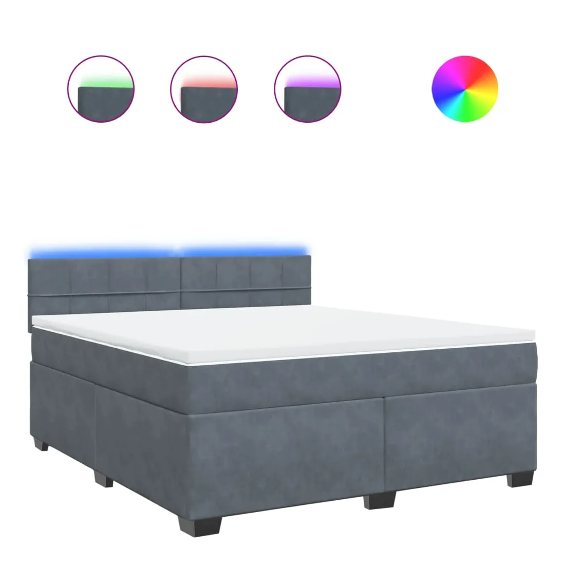 Utilisez ce lit à sommier pour profiter d'une nuit de sommeil réparatrice ! Il vous offre une relaxation maximale et un sommeil agréable. Matériau doux et confortable : le tissu en velours présente une surface douce et lisse qui offre une sensation agréable contre la peau, vous apportant chaleur et confort ultime.Matelas à ressorts ensachés : ce matelas à ressorts ensachés comporte des ressorts ensachés individuels qui fonctionnent indépendamment pour offrir un soutien personnalisé en réagissant uniquement à la pression exercée dans chaque zone. Cette conception empêche « l'enroulement » et réduit le transfert de mouvement par rapport aux matelas traditionnels à ressorts ouverts. Chaque ressort ensaché soutient le corps individuellement.Lumières LED pour une ambiance agréable : ce lit est équipé de lumières LED qui peuvent être facilement réglées pour créer un spectacle lumineux personnalisé. Vous pouvez personnaliser les modes, les couleurs et la luminosité pour améliorer l'ambiance de votre espace intérieur.Surmatelas confortable : ce surmatelas améliore le soutien et le confort grâce à sa surface douce et respirante, tout en prolongeant la durée de vie de votre matelas. Sa housse amovible permet un lavage facile, ce qui facilite l'entretien. Bon à savoir :Ce produit est doté d'un connecteur USB qui nécessite une source d'alimentation USB de 5V certifiée (non incluse).Pour des raisons d'hygiène, le matelas ne peut pas être retourné si l'emballage est retiré ou ouvert.Seule la partie avec un symbole de ciseaux peut être coupée et seule la partie avec l'USB continuera à fonctionner comme avant.