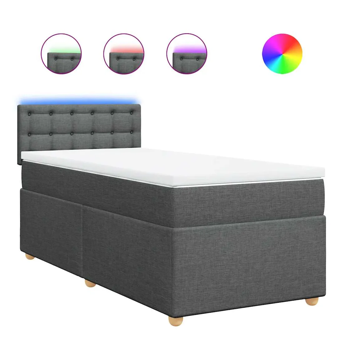 Utilisez ce lit à sommier pour profiter d'une nuit de sommeil réparatrice ! Il vous offre une relaxation maximale et un sommeil agréable. Matériau doux et durable : le tissu en polyester allie douceur, respirabilité et durabilité, vous garantissant un confort et une convivialité ultimes.Matelas à ressorts ensachés : ce matelas à ressorts ensachés comporte des ressorts ensachés individuels qui fonctionnent indépendamment pour offrir un soutien personnalisé en réagissant uniquement à la pression exercée dans chaque zone. Cette conception empêche « l'enroulement » et réduit le transfert de mouvement par rapport aux matelas traditionnels à ressorts ouverts. Chaque ressort ensaché soutient le corps individuellement.Lumières LED pour une ambiance agréable : ce lit est équipé de lumières LED qui peuvent être facilement réglées pour créer un spectacle lumineux personnalisé. Vous pouvez personnaliser les modes, les couleurs et la luminosité pour améliorer l'ambiance de votre espace intérieur.Surmatelas confortable : ce surmatelas améliore le soutien et le confort grâce à sa surface douce et respirante, tout en prolongeant la durée de vie de votre matelas. Sa housse amovible permet un lavage facile, ce qui facilite l'entretien. Bon à savoir :Ce produit est doté d'un connecteur USB qui nécessite une source d'alimentation USB de 5V certifiée (non incluse).Pour des raisons d'hygiène, le matelas ne peut pas être retourné si l'emballage est retiré ou ouvert.Seule la partie avec un symbole de ciseaux peut être coupée et seule la partie avec l'USB continuera à fonctionner comme avant.