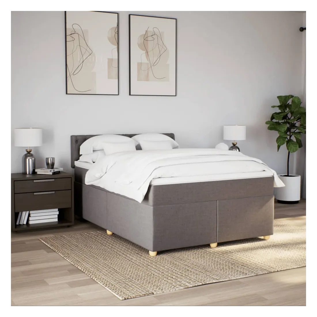 Sommier à lattes de lit avec matelas Taupe 140x190 cm Tissu