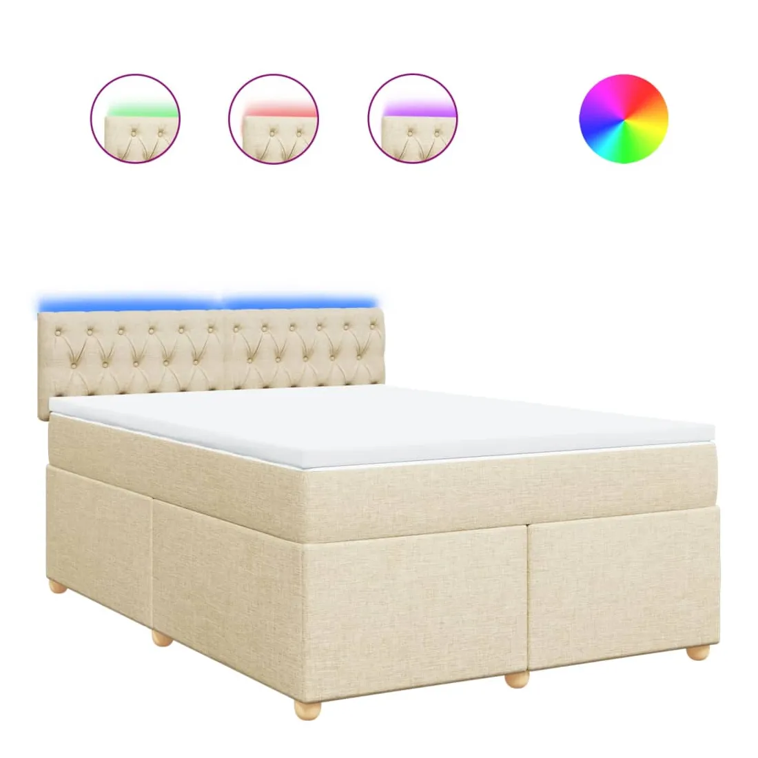 Utilisez ce lit à sommier pour profiter d'une nuit de sommeil réparatrice ! Il vous offre une relaxation maximale et un sommeil agréable. Matériau doux et durable : le tissu en polyester allie douceur, respirabilité et durabilité, vous garantissant un confort et une convivialité ultimes.Matelas à ressorts ensachés : ce matelas à ressorts ensachés comporte des ressorts ensachés individuels qui fonctionnent indépendamment pour offrir un soutien personnalisé en réagissant uniquement à la pression exercée dans chaque zone. Cette conception empêche « l'enroulement » et réduit le transfert de mouvement par rapport aux matelas traditionnels à ressorts ouverts. Chaque ressort ensaché soutient le corps individuellement.Lumières LED pour une ambiance agréable : ce lit est équipé de lumières LED qui peuvent être facilement réglées pour créer un spectacle lumineux personnalisé. Vous pouvez personnaliser les modes, les couleurs et la luminosité pour améliorer l'ambiance de votre espace intérieur.Surmatelas confortable : ce surmatelas améliore le soutien et le confort grâce à sa surface douce et respirante, tout en prolongeant la durée de vie de votre matelas. Sa housse amovible permet un lavage facile, ce qui facilite l'entretien. Bon à savoir :Ce produit est doté d'un connecteur USB qui nécessite une source d'alimentation USB de 5V certifiée (non incluse).Pour des raisons d'hygiène, le matelas ne peut pas être retourné si l'emballage est retiré ou ouvert.Seule la partie avec un symbole de ciseaux peut être coupée et seule la partie avec l'USB continuera à fonctionner comme avant.