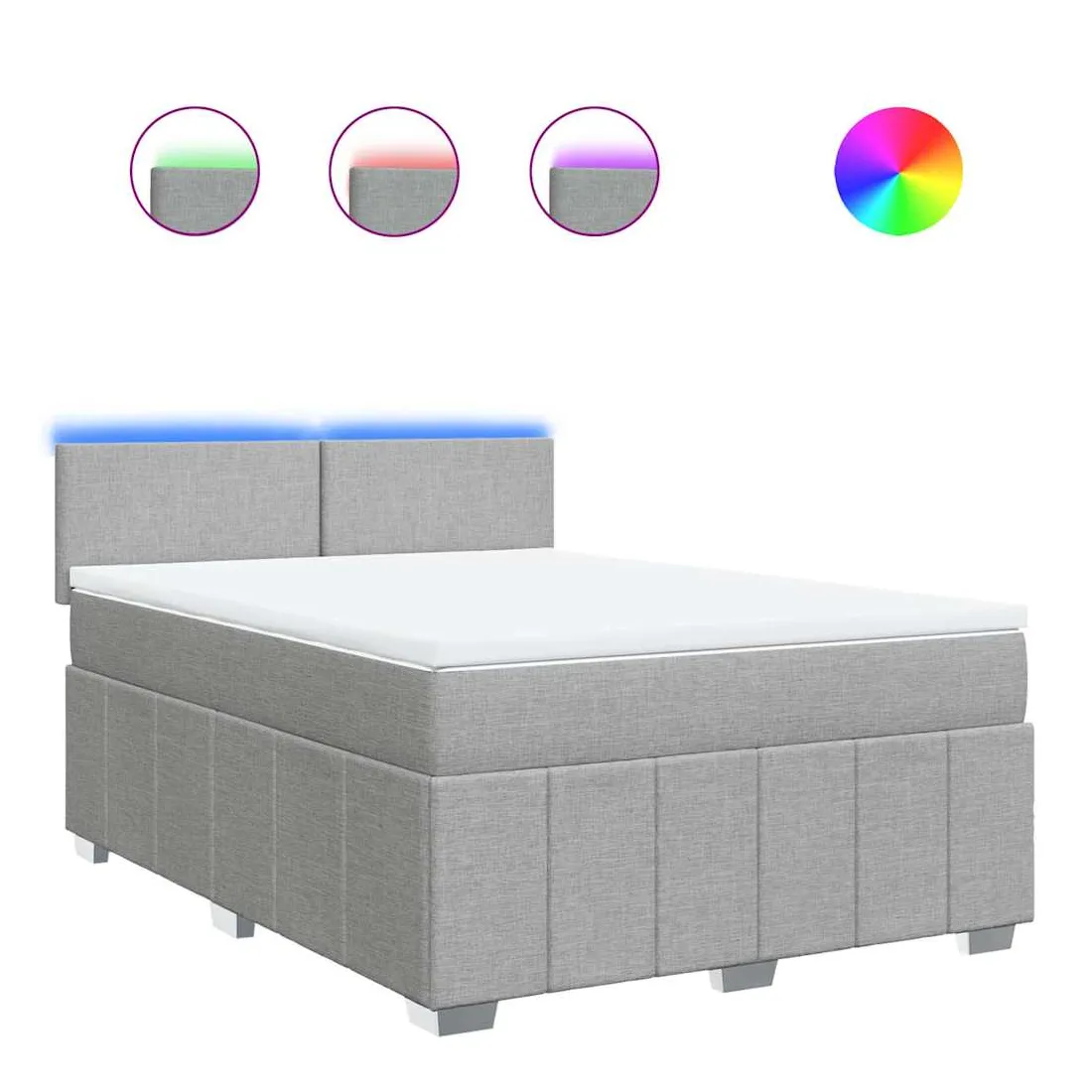 Utilisez ce lit à sommier pour profiter d'une nuit de sommeil réparatrice ! Il vous offre une relaxation maximale et un sommeil agréable. Matériau doux et durable : le tissu en polyester allie douceur, respirabilité et durabilité, vous garantissant un confort et une convivialité ultimes.Matelas à ressorts ensachés : ce matelas à ressorts ensachés comporte des ressorts ensachés individuels qui fonctionnent indépendamment pour offrir un soutien personnalisé en réagissant uniquement à la pression exercée dans chaque zone. Cette conception empêche « l'enroulement » et réduit le transfert de mouvement par rapport aux matelas traditionnels à ressorts ouverts. Chaque ressort ensaché soutient le corps individuellement.Lumières LED pour une ambiance agréable : ce lit est équipé de lumières LED qui peuvent être facilement réglées pour créer un spectacle lumineux personnalisé. Vous pouvez personnaliser les modes, les couleurs et la luminosité pour améliorer l'ambiance de votre espace intérieur.Surmatelas confortable : ce surmatelas améliore le soutien et le confort grâce à sa surface douce et respirante, tout en prolongeant la durée de vie de votre matelas. Sa housse amovible permet un lavage facile, ce qui facilite l'entretien. Bon à savoir :Ce produit est doté d'un connecteur USB qui nécessite une source d'alimentation USB de 5V certifiée (non incluse).Pour des raisons d'hygiène, le matelas ne peut pas être retourné si l'emballage est retiré ou ouvert.Seule la partie avec un symbole de ciseaux peut être coupée et seule la partie avec l'USB continuera à fonctionner comme avant.