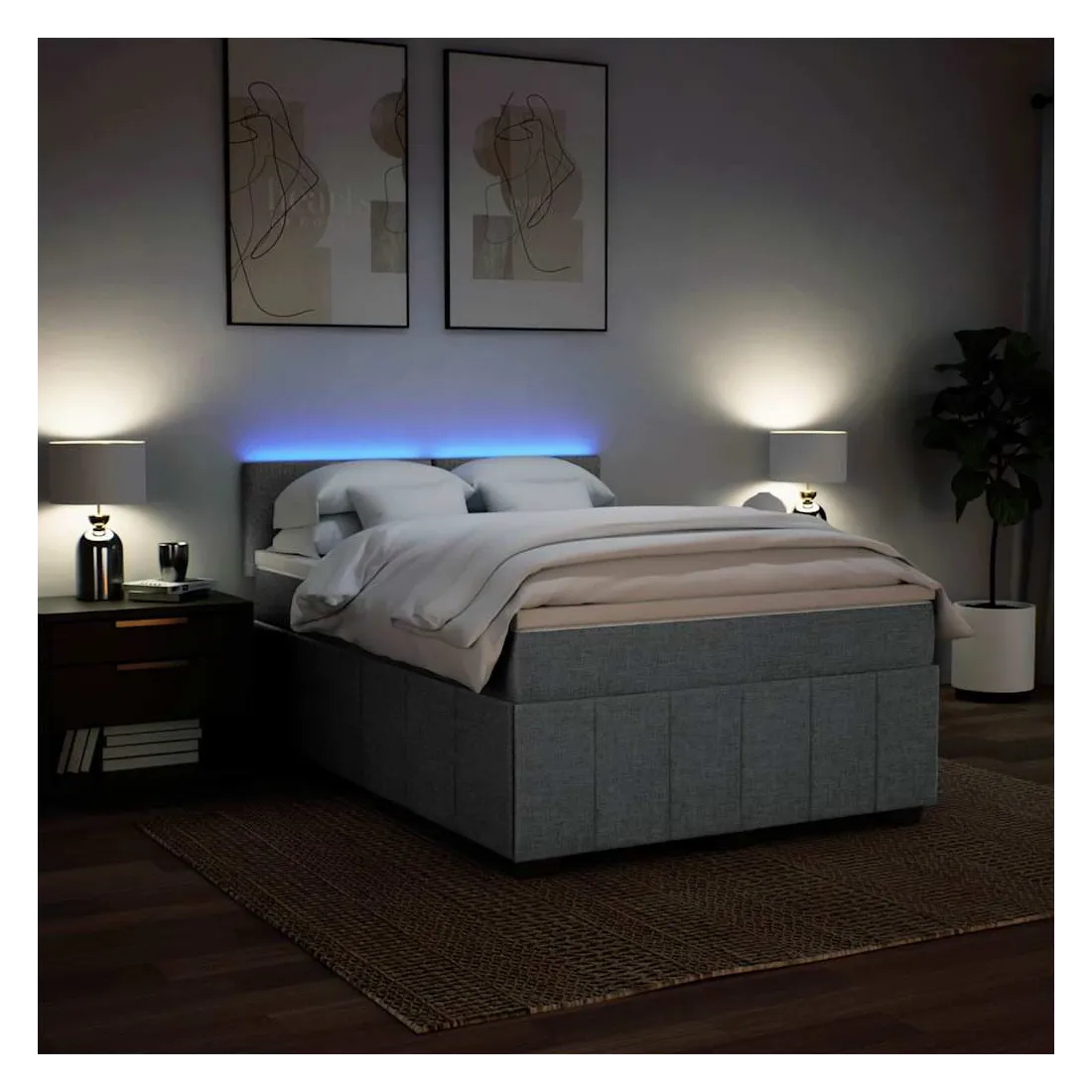 Utilisez ce lit à sommier pour profiter d'une nuit de sommeil réparatrice ! Il vous offre une relaxation maximale et un sommeil agréable. Matériau doux et durable : le tissu en polyester allie douceur, respirabilité et durabilité, vous garantissant un confort et une convivialité ultimes. Matelas à ressorts ensachés : ce matelas à ressorts ensachés comporte des ressorts ensachés individuels qui fonctionnent indépendamment pour offrir un soutien personnalisé en réagissant uniquement à la pression exercée dans chaque zone. Cette conception empêche « l'enroulement » et réduit le transfert de mouvement par rapport aux matelas traditionnels à ressorts ouverts. Chaque ressort ensaché soutient le corps individuellement. Lumières LED pour une ambiance agréable : ce lit est équipé de lumières LE