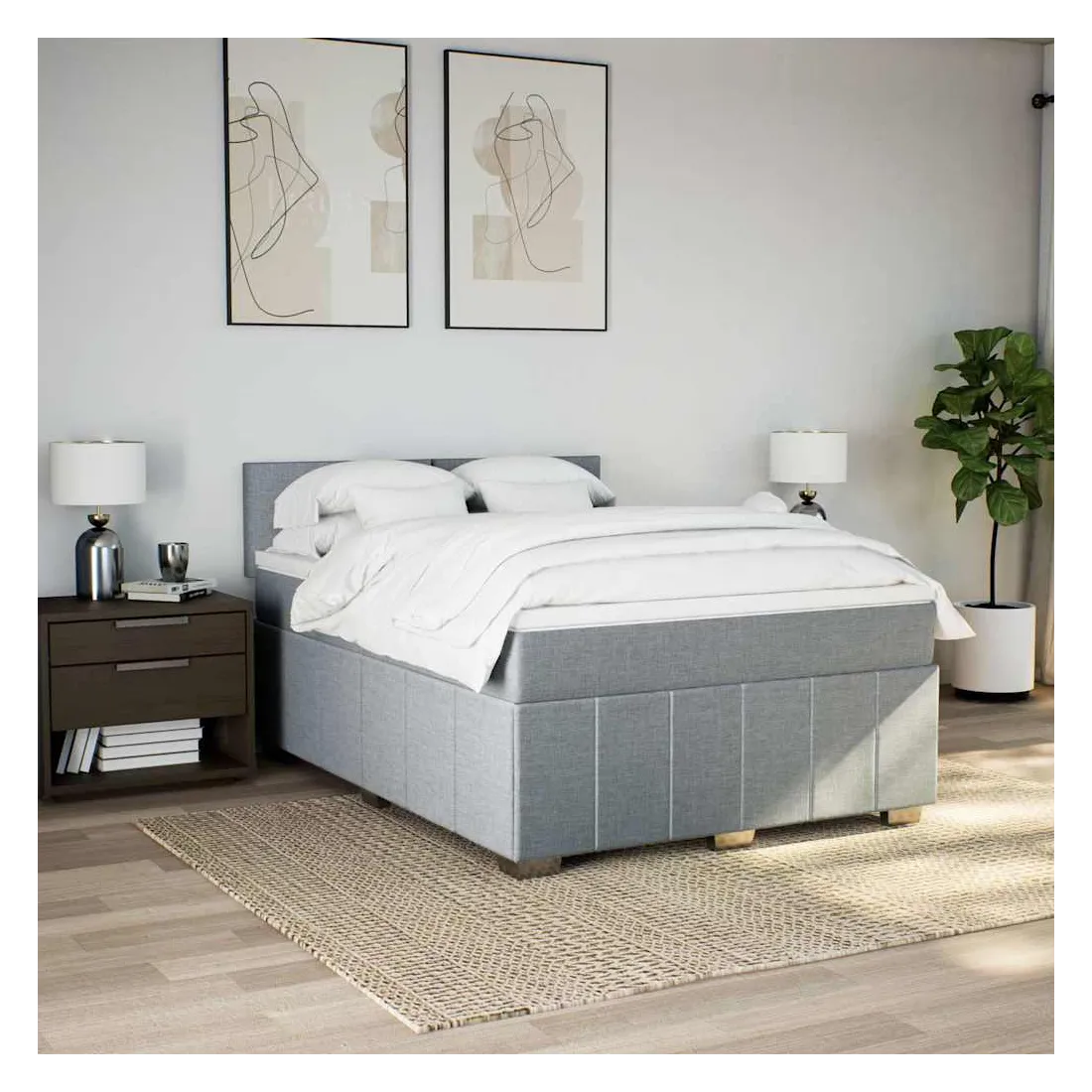 Sommier à lattes de lit avec matelas Gris clair 140x200cm Tissu