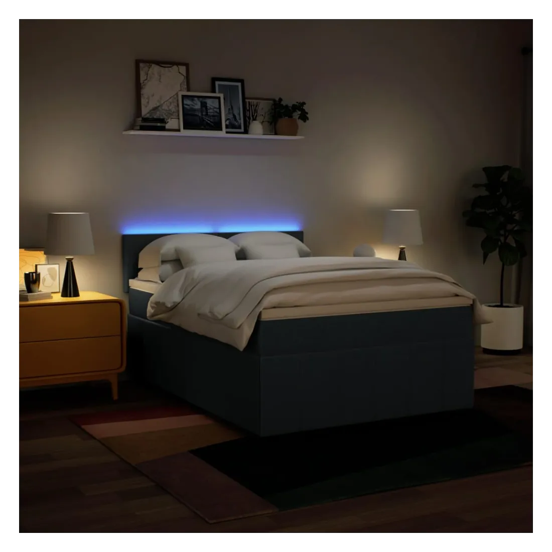 Utilisez ce lit à sommier pour profiter d'une nuit de sommeil réparatrice ! Il vous offre une relaxation maximale et un sommeil agréable. Matériau doux et durable : le tissu en polyester allie douceur, respirabilité et durabilité, vous garantissant un confort et une convivialité ultimes.Matelas à ressorts ensachés : ce matelas à ressorts ensachés comporte des ressorts ensachés individuels qui fonctionnent indépendamment pour offrir un soutien personnalisé en réagissant uniquement à la pression exercée dans chaque zone. Cette conception empêche « l'enroulement » et réduit le transfert de mouvement par rapport aux matelas traditionnels à ressorts ouverts. Chaque ressort ensaché soutient le corps individuellement.Lumières LED pour une ambiance agréable : ce lit est équipé de lumières LED qui peuvent être facilement réglées pour créer un spectacle lumineux personnalisé. Vous pouvez personnaliser les modes, les couleurs et la luminosité pour améliorer l'ambiance de votre espace intérieur.Surmatelas confortable : ce surmatelas améliore le soutien et le confort grâce à sa surface douce et respirante, tout en prolongeant la durée de vie de votre matelas. Sa housse amovible permet un lavage facile, ce qui facilite l'entretien. Bon à savoir :Ce produit est doté d'un connecteur USB qui nécessite une source d'alimentation USB de 5V certifiée (non incluse).Pour des raisons d'hygiène, le matelas ne peut pas être retourné si l'emballage est retiré ou ouvert.Seule la partie avec un symbole de ciseaux peut être coupée et seule la partie avec l'USB continuera à fonctionner comme avant.
