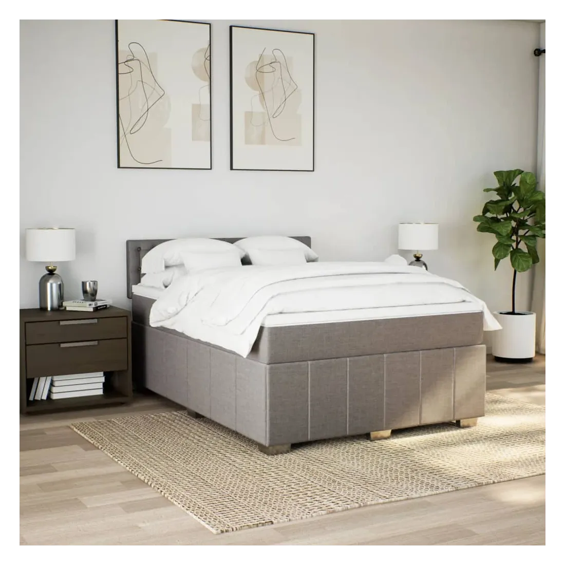 Sommier à lattes de lit avec matelas Taupe 140x200 cm Tissu