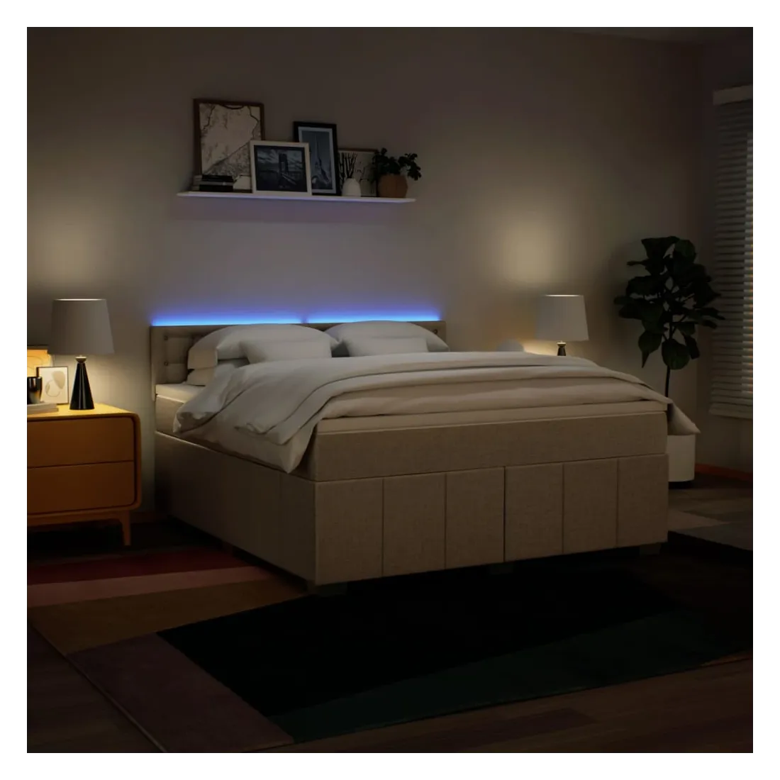 Utilisez ce lit à sommier pour profiter d'une nuit de sommeil réparatrice ! Il vous offre une relaxation maximale et un sommeil agréable. Matériau doux et durable : le tissu en polyester allie douceur, respirabilité et durabilité, vous garantissant un confort et une convivialité ultimes.Matelas à ressorts ensachés : ce matelas à ressorts ensachés comporte des ressorts ensachés individuels qui fonctionnent indépendamment pour offrir un soutien personnalisé en réagissant uniquement à la pression exercée dans chaque zone. Cette conception empêche « l'enroulement » et réduit le transfert de mouvement par rapport aux matelas traditionnels à ressorts ouverts. Chaque ressort ensaché soutient le corps individuellement.Lumières LED pour une ambiance agréable : ce lit est équipé de lumières LED qui peuvent être facilement réglées pour créer un spectacle lumineux personnalisé. Vous pouvez personnaliser les modes, les couleurs et la luminosité pour améliorer l'ambiance de votre espace intérieur.Surmatelas confortable : ce surmatelas améliore le soutien et le confort grâce à sa surface douce et respirante, tout en prolongeant la durée de vie de votre matelas. Sa housse amovible permet un lavage facile, ce qui facilite l'entretien. Bon à savoir :Ce produit est doté d'un connecteur USB qui nécessite une source d'alimentation USB de 5V certifiée (non incluse).Pour des raisons d'hygiène, le matelas ne peut pas être retourné si l'emballage est retiré ou ouvert.Seule la partie avec un symbole de ciseaux peut être coupée et seule la partie avec l'USB continuera à fonctionner comme avant.