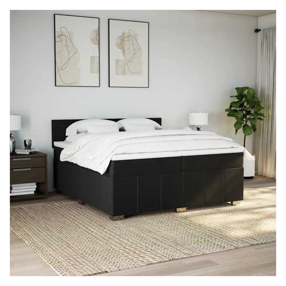 Sommier à lattes de lit avec matelas Noir 200x200 cm Tissu