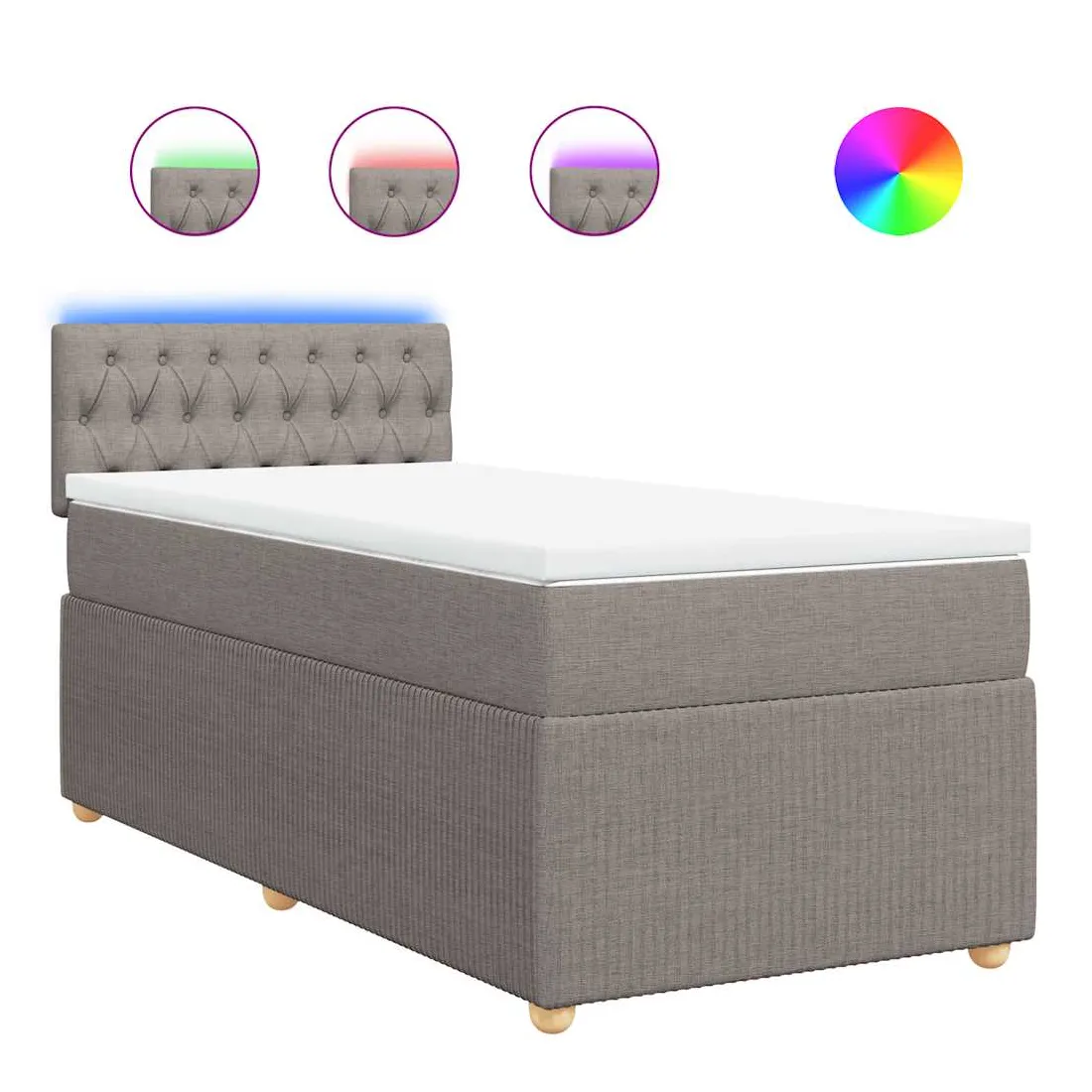 Utilisez ce lit à sommier pour profiter d'une nuit de sommeil réparatrice ! Il vous offre une relaxation maximale et un sommeil agréable. Matériau doux et durable : le tissu en polyester allie douceur, respirabilité et durabilité, vous garantissant un confort et une convivialité ultimes.Matelas à ressorts ensachés : ce matelas à ressorts ensachés comporte des ressorts ensachés individuels qui fonctionnent indépendamment pour offrir un soutien personnalisé en réagissant uniquement à la pression exercée dans chaque zone. Cette conception empêche « l'enroulement » et réduit le transfert de mouvement par rapport aux matelas traditionnels à ressorts ouverts. Chaque ressort ensaché soutient le corps individuellement.Lumières LED pour une ambiance agréable : ce lit est équipé de lumières LED qui peuvent être facilement réglées pour créer un spectacle lumineux personnalisé. Vous pouvez personnaliser les modes, les couleurs et la luminosité pour améliorer l'ambiance de votre espace intérieur.Surmatelas confortable : ce surmatelas améliore le soutien et le confort grâce à sa surface douce et respirante, tout en prolongeant la durée de vie de votre matelas. Sa housse amovible permet un lavage facile, ce qui facilite l'entretien. Bon à savoir :Ce produit est doté d'un connecteur USB qui nécessite une source d'alimentation USB de 5V certifiée (non incluse).Pour des raisons d'hygiène, le matelas ne peut pas être retourné si l'emballage est retiré ou ouvert.Seule la partie avec un symbole de ciseaux peut être coupée et seule la partie avec l'USB continuera à fonctionner comme avant.