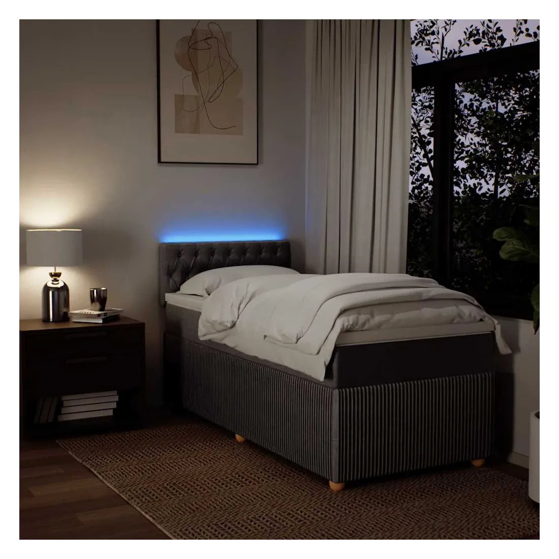 Utilisez ce lit à sommier pour profiter d'une nuit de sommeil réparatrice ! Il vous offre une relaxation maximale et un sommeil agréable. Matériau doux et durable : le tissu en polyester allie douceur, respirabilité et durabilité, vous garantissant un confort et une convivialité ultimes.Matelas à ressorts ensachés : ce matelas à ressorts ensachés comporte des ressorts ensachés individuels qui fonctionnent indépendamment pour offrir un soutien personnalisé en réagissant uniquement à la pression exercée dans chaque zone. Cette conception empêche « l'enroulement » et réduit le transfert de mouvement par rapport aux matelas traditionnels à ressorts ouverts. Chaque ressort ensaché soutient le corps individuellement.Lumières LED pour une ambiance agréable : ce lit est équipé de lumières LED qui peuvent être facilement réglées pour créer un spectacle lumineux personnalisé. Vous pouvez personnaliser les modes, les couleurs et la luminosité pour améliorer l'ambiance de votre espace intérieur.Surmatelas confortable : ce surmatelas améliore le soutien et le confort grâce à sa surface douce et respirante, tout en prolongeant la durée de vie de votre matelas. Sa housse amovible permet un lavage facile, ce qui facilite l'entretien. Bon à savoir :Ce produit est doté d'un connecteur USB qui nécessite une source d'alimentation USB de 5V certifiée (non incluse).Pour des raisons d'hygiène, le matelas ne peut pas être retourné si l'emballage est retiré ou ouvert.Seule la partie avec un symbole de ciseaux peut être coupée et seule la partie avec l'USB continuera à fonctionner comme avant.