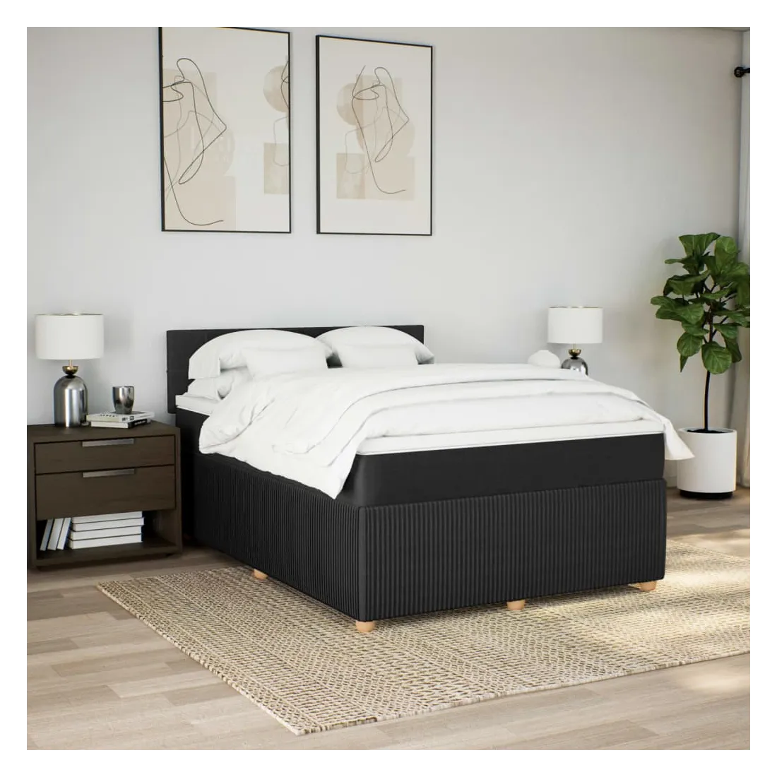 Sommier à lattes de lit avec matelas Noir 140x190 cm Tissu