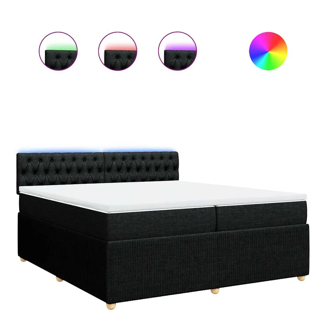 Utilisez ce lit à sommier pour profiter d'une nuit de sommeil réparatrice ! Il vous offre une relaxation maximale et un sommeil agréable. Matériau doux et durable : le tissu en polyester allie douceur, respirabilité et durabilité, vous garantissant un confort et une convivialité ultimes.Matelas à ressorts ensachés : ce matelas à ressorts ensachés comporte des ressorts ensachés individuels qui fonctionnent indépendamment pour offrir un soutien personnalisé en réagissant uniquement à la pression exercée dans chaque zone. Cette conception empêche « l'enroulement » et réduit le transfert de mouvement par rapport aux matelas traditionnels à ressorts ouverts. Chaque ressort ensaché soutient le corps individuellement.Lumières LED pour une ambiance agréable : ce lit est équipé de lumières LED qui peuvent être facilement réglées pour créer un spectacle lumineux personnalisé. Vous pouvez personnaliser les modes, les couleurs et la luminosité pour améliorer l'ambiance de votre espace intérieur.Surmatelas confortable : ce surmatelas améliore le soutien et le confort grâce à sa surface douce et respirante, tout en prolongeant la durée de vie de votre matelas. Sa housse amovible permet un lavage facile, ce qui facilite l'entretien. Bon à savoir :Ce produit est doté d'un connecteur USB qui nécessite une source d'alimentation USB de 5V certifiée (non incluse).Pour des raisons d'hygiène, le matelas ne peut pas être retourné si l'emballage est retiré ou ouvert.Seule la partie avec un symbole de ciseaux peut être coupée et seule la partie avec l'USB continuera à fonctionner comme avant.
