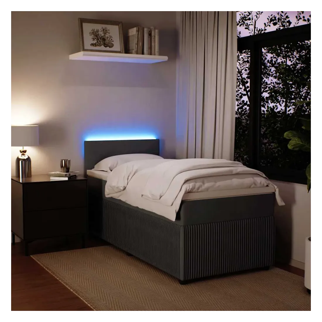 Utilisez ce lit à sommier pour profiter d'une nuit de sommeil réparatrice ! Il vous offre une relaxation maximale et un sommeil agréable. Matériau doux et confortable : le tissu en velours présente une surface douce et lisse qui offre une sensation agréable contre la peau, vous apportant chaleur et confort ultime.Matelas à ressorts ensachés : ce matelas à ressorts ensachés comporte des ressorts ensachés individuels qui fonctionnent indépendamment pour offrir un soutien personnalisé en réagissant uniquement à la pression exercée dans chaque zone. Cette conception empêche « l'enroulement » et réduit le transfert de mouvement par rapport aux matelas traditionnels à ressorts ouverts. Chaque ressort ensaché soutient le corps individuellement.Lumières LED pour une ambiance agréable : ce lit est équipé de lumières LED qui peuvent être facilement réglées pour créer un spectacle lumineux personnalisé. Vous pouvez personnaliser les modes, les couleurs et la luminosité pour améliorer l'ambiance de votre espace intérieur.Surmatelas confortable : ce surmatelas améliore le soutien et le confort grâce à sa surface douce et respirante, tout en prolongeant la durée de vie de votre matelas. Sa housse amovible permet un lavage facile, ce qui facilite l'entretien. Bon à savoir :Ce produit est doté d'un connecteur USB qui nécessite une source d'alimentation USB de 5V certifiée (non incluse).Pour des raisons d'hygiène, le matelas ne peut pas être retourné si l'emballage est retiré ou ouvert.Seule la partie avec un symbole de ciseaux peut être coupée et seule la partie avec l'USB continuera à fonctionner comme avant.