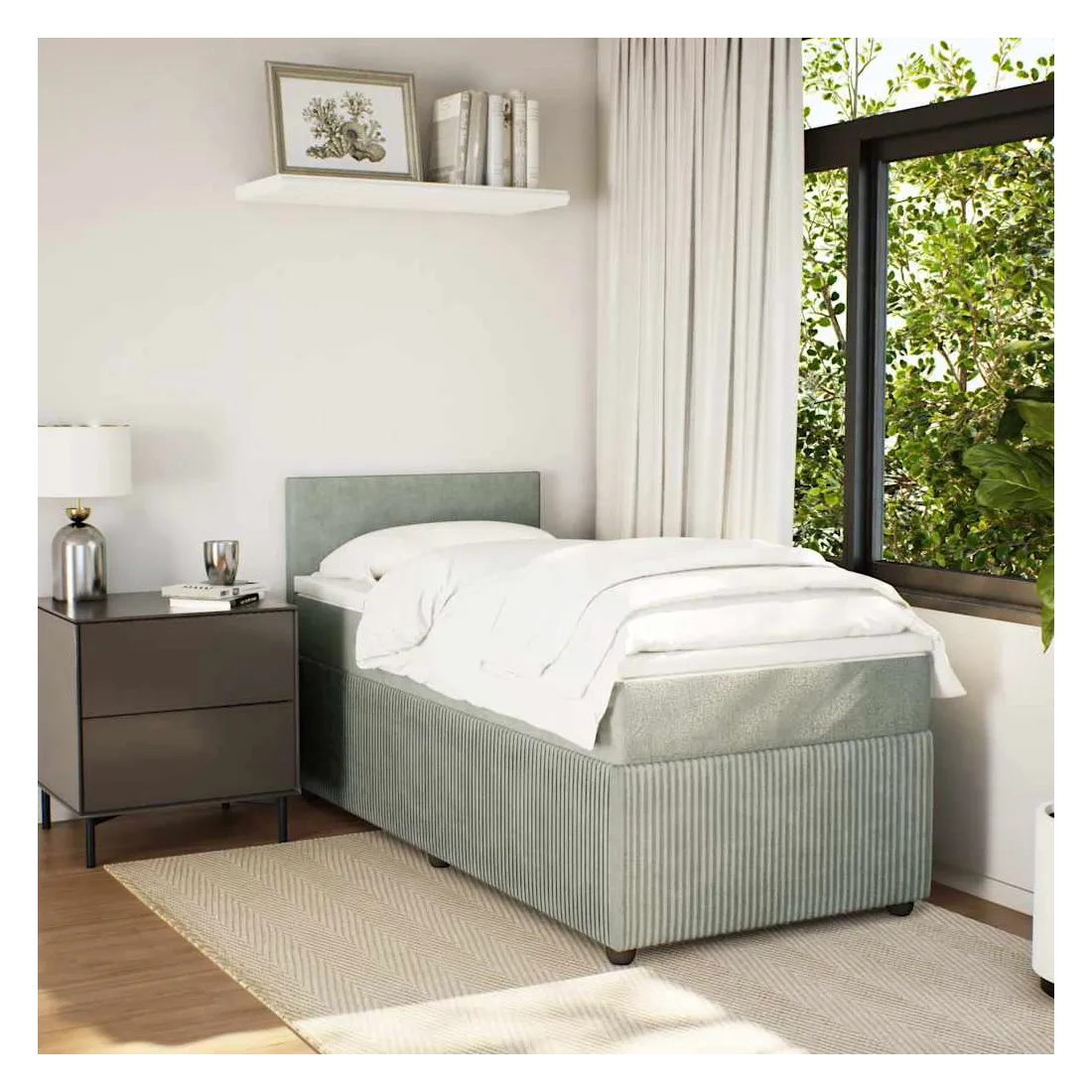 Utilisez ce lit à sommier pour profiter d'une nuit de sommeil réparatrice ! Il vous offre une relaxation maximale et un sommeil agréable. Matériau doux et confortable : le tissu en velours présente une surface douce et lisse qui offre une sensation agréable contre la peau, vous apportant chaleur et confort ultime.Matelas à ressorts ensachés : ce matelas à ressorts ensachés comporte des ressorts ensachés individuels qui fonctionnent indépendamment pour offrir un soutien personnalisé en réagissant uniquement à la pression exercée dans chaque zone. Cette conception empêche « l'enroulement » et réduit le transfert de mouvement par rapport aux matelas traditionnels à ressorts ouverts. Chaque ressort ensaché soutient le corps individuellement.Lumières LED pour une ambiance agréable : ce lit est équipé de lumières LED qui peuvent être facilement réglées pour créer un spectacle lumineux personnalisé. Vous pouvez personnaliser les modes, les couleurs et la luminosité pour améliorer l'ambiance de votre espace intérieur.Surmatelas confortable : ce surmatelas améliore le soutien et le confort grâce à sa surface douce et respirante, tout en prolongeant la durée de vie de votre matelas. Sa housse amovible permet un lavage facile, ce qui facilite l'entretien. Bon à savoir :Ce produit est doté d'un connecteur USB qui nécessite une source d'alimentation USB de 5V certifiée (non incluse).Pour des raisons d'hygiène, le matelas ne peut pas être retourné si l'emballage est retiré ou ouvert.Seule la partie avec un symbole de ciseaux peut être coupée et seule la partie avec l'USB continuera à fonctionner comme avant.
