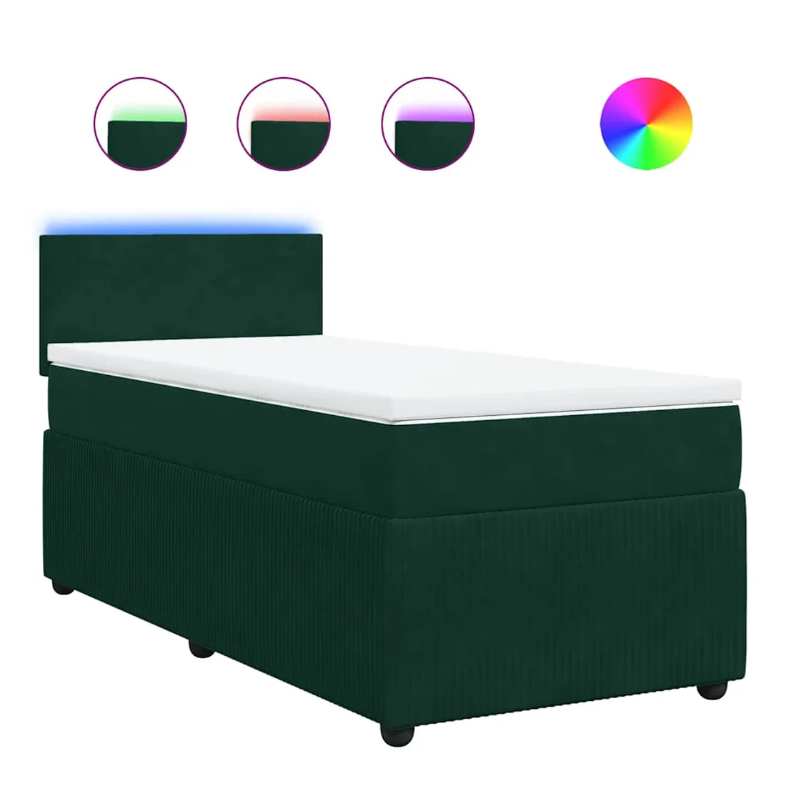 Utilisez ce lit à sommier pour profiter d'une nuit de sommeil réparatrice ! Il vous offre une relaxation maximale et un sommeil agréable. Matériau doux et confortable : le tissu en velours présente une surface douce et lisse qui offre une sensation agréable contre la peau, vous apportant chaleur et confort ultime.Matelas à ressorts ensachés : ce matelas à ressorts ensachés comporte des ressorts ensachés individuels qui fonctionnent indépendamment pour offrir un soutien personnalisé en réagissant uniquement à la pression exercée dans chaque zone. Cette conception empêche « l'enroulement » et réduit le transfert de mouvement par rapport aux matelas traditionnels à ressorts ouverts. Chaque ressort ensaché soutient le corps individuellement.Lumières LED pour une ambiance agréable : ce lit est équipé de lumières LED qui peuvent être facilement réglées pour créer un spectacle lumineux personnalisé. Vous pouvez personnaliser les modes, les couleurs et la luminosité pour améliorer l'ambiance de votre espace intérieur.Surmatelas confortable : ce surmatelas améliore le soutien et le confort grâce à sa surface douce et respirante, tout en prolongeant la durée de vie de votre matelas. Sa housse amovible permet un lavage facile, ce qui facilite l'entretien. Bon à savoir :Ce produit est doté d'un connecteur USB qui nécessite une source d'alimentation USB de 5V certifiée (non incluse).Pour des raisons d'hygiène, le matelas ne peut pas être retourné si l'emballage est retiré ou ouvert.Seule la partie avec un symbole de ciseaux peut être coupée et seule la partie avec l'USB continuera à fonctionner comme avant.