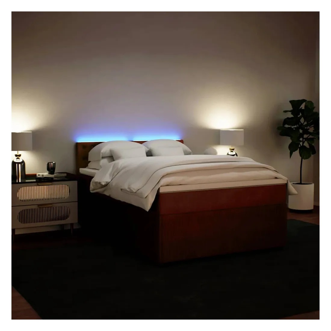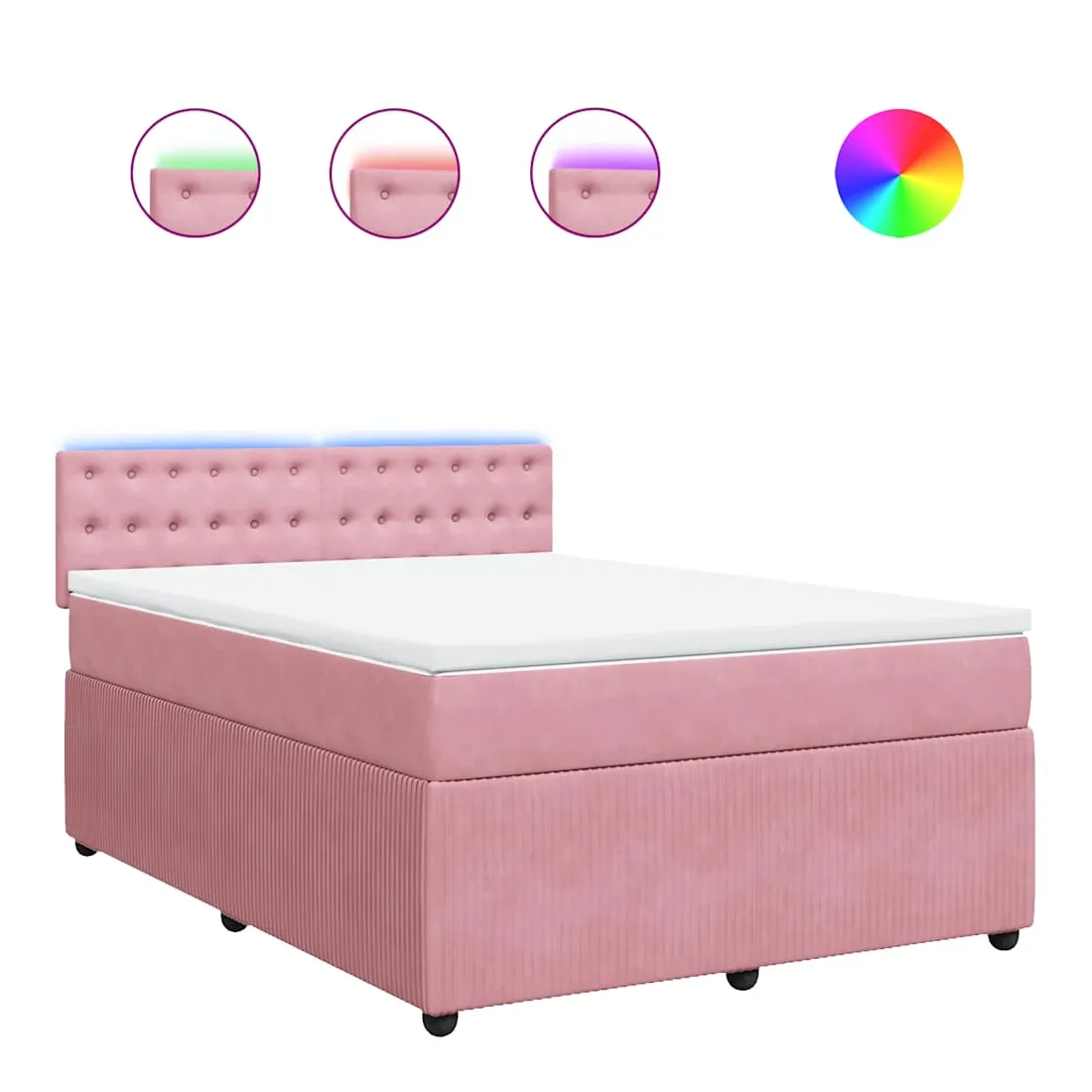 Utilisez ce lit à sommier pour profiter d'une nuit de sommeil réparatrice ! Il vous offre une relaxation maximale et un sommeil agréable. Matériau doux et confortable : le tissu en velours présente une surface douce et lisse qui offre une sensation agréable contre la peau, vous apportant chaleur et confort ultime.Matelas à ressorts ensachés : ce matelas à ressorts ensachés comporte des ressorts ensachés individuels qui fonctionnent indépendamment pour offrir un soutien personnalisé en réagissant uniquement à la pression exercée dans chaque zone. Cette conception empêche « l'enroulement » et réduit le transfert de mouvement par rapport aux matelas traditionnels à ressorts ouverts. Chaque ressort ensaché soutient le corps individuellement.Lumières LED pour une ambiance agréable : ce lit est équipé de lumières LED qui peuvent être facilement réglées pour créer un spectacle lumineux personnalisé. Vous pouvez personnaliser les modes, les couleurs et la luminosité pour améliorer l'ambiance de votre espace intérieur.Surmatelas confortable : ce surmatelas améliore le soutien et le confort grâce à sa surface douce et respirante, tout en prolongeant la durée de vie de votre matelas. Sa housse amovible permet un lavage facile, ce qui facilite l'entretien. Bon à savoir :Ce produit est doté d'un connecteur USB qui nécessite une source d'alimentation USB de 5V certifiée (non incluse).Pour des raisons d'hygiène, le matelas ne peut pas être retourné si l'emballage est retiré ou ouvert.Seule la partie avec un symbole de ciseaux peut être coupée et seule la partie avec l'USB continuera à fonctionner comme avant.