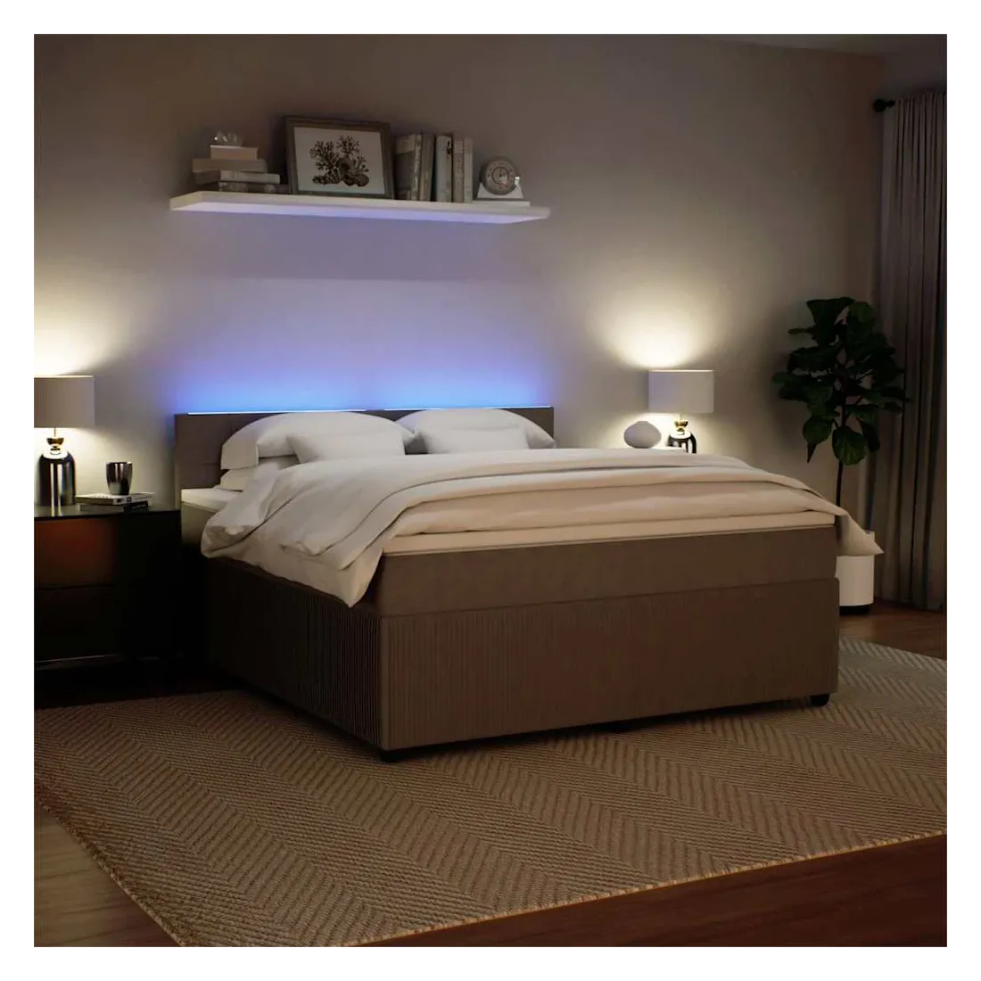 Utilisez ce lit à sommier pour profiter d'une nuit de sommeil réparatrice ! Il vous offre une relaxation maximale et un sommeil agréable. Matériau doux et confortable : le tissu en velours présente une surface douce et lisse qui offre une sensation agréable contre la peau, vous apportant chaleur et confort ultime.Matelas à ressorts ensachés : ce matelas à ressorts ensachés comporte des ressorts ensachés individuels qui fonctionnent indépendamment pour offrir un soutien personnalisé en réagissant uniquement à la pression exercée dans chaque zone. Cette conception empêche « l'enroulement » et réduit le transfert de mouvement par rapport aux matelas traditionnels à ressorts ouverts. Chaque ressort ensaché soutient le corps individuellement.Lumières LED pour une ambiance agréable : ce lit est équipé de lumières LED qui peuvent être facilement réglées pour créer un spectacle lumineux personnalisé. Vous pouvez personnaliser les modes, les couleurs et la luminosité pour améliorer l'ambiance de votre espace intérieur.Surmatelas confortable : ce surmatelas améliore le soutien et le confort grâce à sa surface douce et respirante, tout en prolongeant la durée de vie de votre matelas. Sa housse amovible permet un lavage facile, ce qui facilite l'entretien. Bon à savoir :Ce produit est doté d'un connecteur USB qui nécessite une source d'alimentation USB de 5V certifiée (non incluse).Pour des raisons d'hygiène, le matelas ne peut pas être retourné si l'emballage est retiré ou ouvert.Seule la partie avec un symbole de ciseaux peut être coupée et seule la partie avec l'USB continuera à fonctionner comme avant.
