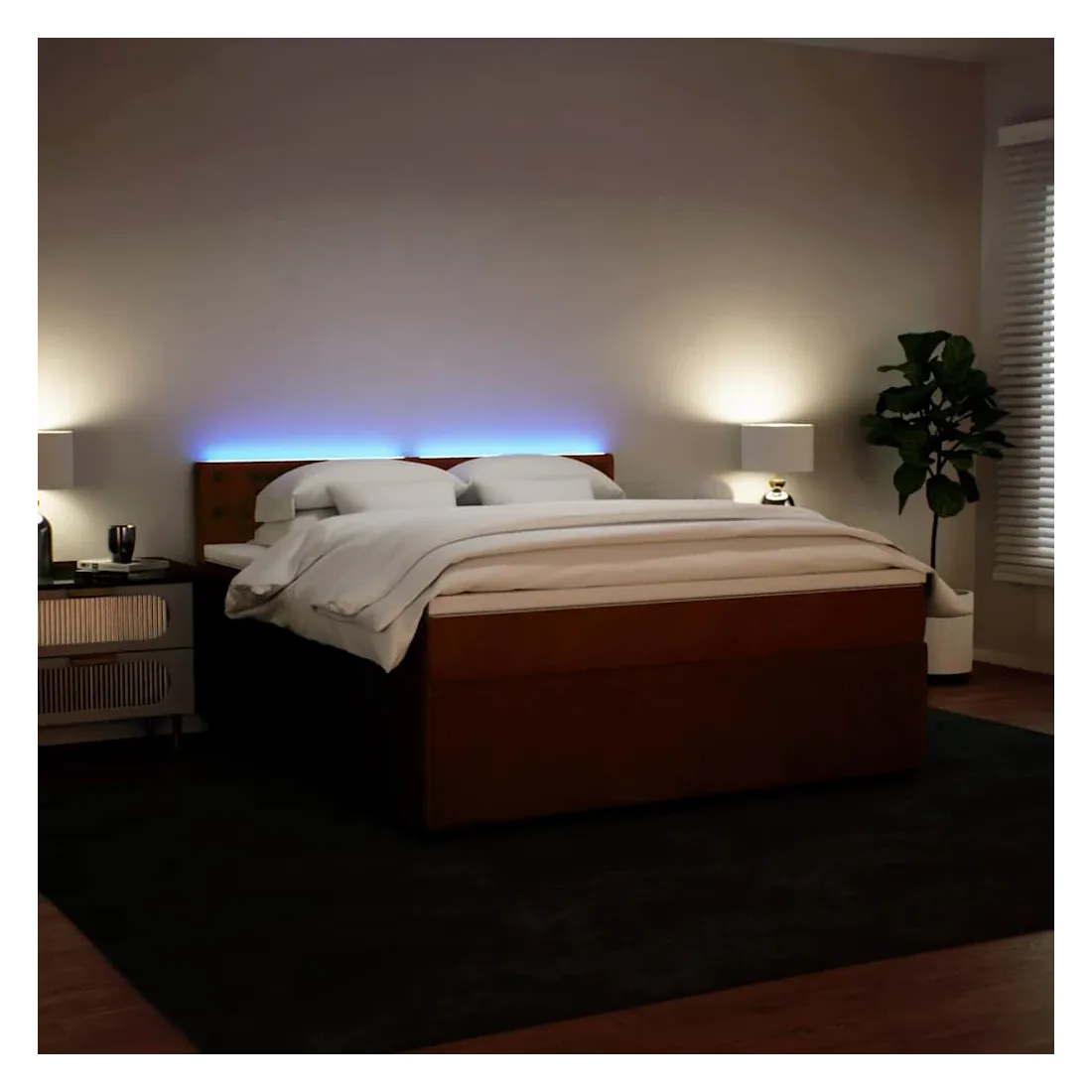 Utilisez ce lit à sommier pour profiter d'une nuit de sommeil réparatrice ! Il vous offre une relaxation maximale et un sommeil agréable. Matériau doux et confortable : le tissu en velours présente une surface douce et lisse qui offre une sensation agréable contre la peau, vous apportant chaleur et confort ultime.Matelas à ressorts ensachés : ce matelas à ressorts ensachés comporte des ressorts ensachés individuels qui fonctionnent indépendamment pour offrir un soutien personnalisé en réagissant uniquement à la pression exercée dans chaque zone. Cette conception empêche « l'enroulement » et réduit le transfert de mouvement par rapport aux matelas traditionnels à ressorts ouverts. Chaque ressort ensaché soutient le corps individuellement.Lumières LED pour une ambiance agréable : ce lit est équipé de lumières LED qui peuvent être facilement réglées pour créer un spectacle lumineux personnalisé. Vous pouvez personnaliser les modes, les couleurs et la luminosité pour améliorer l'ambiance de votre espace intérieur.Surmatelas confortable : ce surmatelas améliore le soutien et le confort grâce à sa surface douce et respirante, tout en prolongeant la durée de vie de votre matelas. Sa housse amovible permet un lavage facile, ce qui facilite l'entretien. Bon à savoir :Ce produit est doté d'un connecteur USB qui nécessite une source d'alimentation USB de 5V certifiée (non incluse).Pour des raisons d'hygiène, le matelas ne peut pas être retourné si l'emballage est retiré ou ouvert.Seule la partie avec un symbole de ciseaux peut être coupée et seule la partie avec l'USB continuera à fonctionner comme avant.