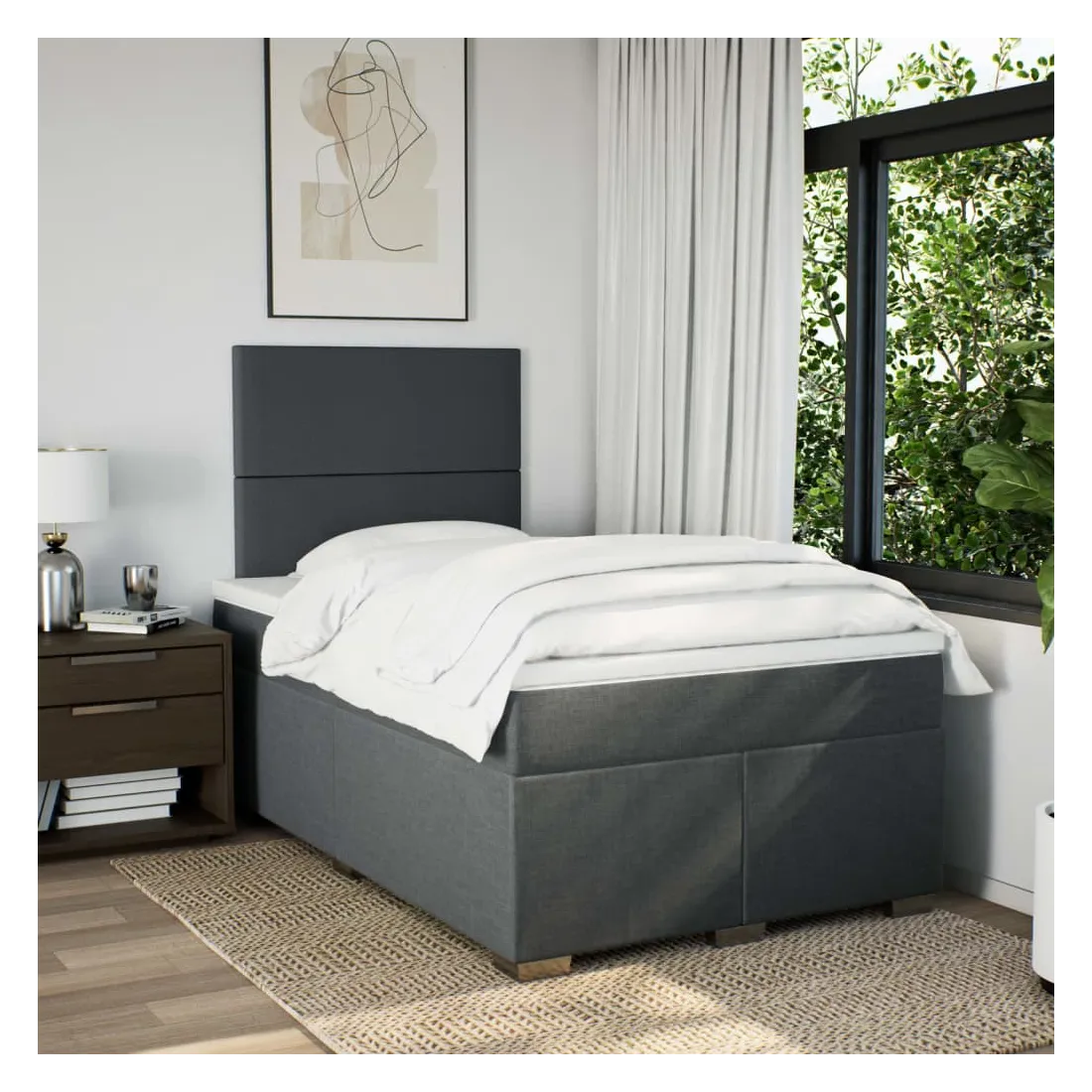 Utilisez ce lit à sommier pour profiter d'une nuit de sommeil réparatrice ! Il vous offre une relaxation maximale et un sommeil agréable. Matériau doux et durable : le tissu en polyester allie douceur, respirabilité et durabilité, vous garantissant un confort et une convivialité ultimes.Matelas à ressorts ensachés : ce matelas à ressorts ensachés comporte des ressorts ensachés individuels qui fonctionnent indépendamment pour offrir un soutien personnalisé en réagissant uniquement à la pression exercée dans chaque zone. Cette conception empêche « l'enroulement » et réduit le transfert de mouvement par rapport aux matelas traditionnels à ressorts ouverts. Chaque ressort ensaché soutient le corps individuellement.Tête de lit réglable en hauteur : la tête de lit est réglable en hauteur pour s'adapter à vos préférences.Surmatelas confortable : ce surmatelas améliore le soutien et le confort grâce à sa surface douce et respirante, tout en prolongeant la durée de vie de votre matelas. Sa housse amovible permet un lavage facile, ce qui facilite l'entretien.Lattes pour un soutien optimal : le cadre de lit est complété par des lattes pour offrir un soutien et une respirabilité essentiels à votre matelas. Bon à savoir :Pour des raisons d'hygiène, le matelas ne peut pas être retourné si l'emballage est retiré ou ouvert.