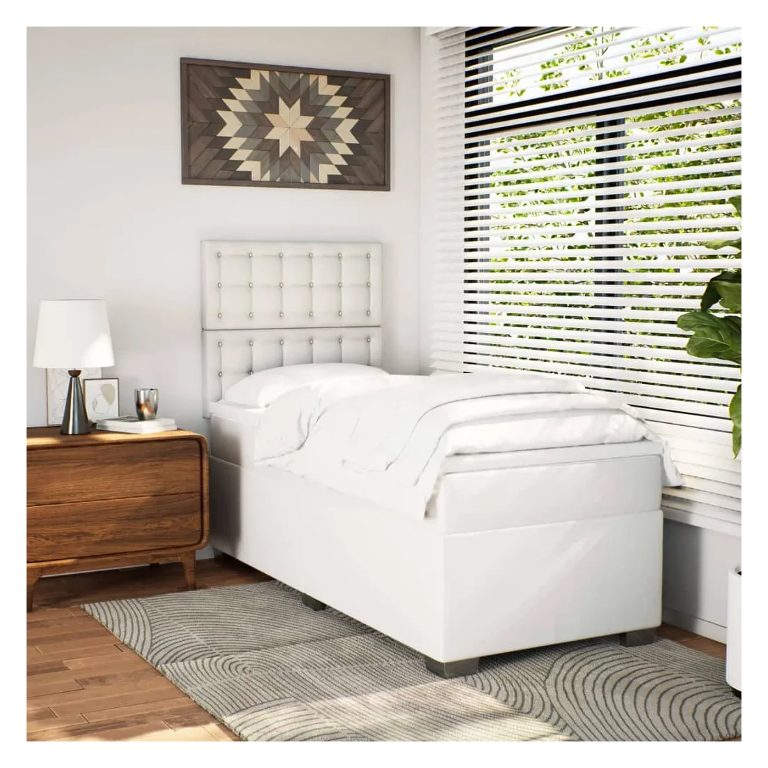 Utilisez ce lit à sommier pour profiter d'une nuit de sommeil réparatrice ! Il vous offre une relaxation maximale et un sommeil agréable. Longue durée de vie et entretien facile : le similicuir est un matériau très durable qui résiste aux taches, ce qui le rend facile à nettoyer avec un chiffon humide. Sa surface lisse lui confère un aspect élégant qui ressemble à celui du cuir véritable.Matelas à ressorts ensachés : ce matelas à ressorts ensachés comporte des ressorts ensachés individuels qui fonctionnent indépendamment pour offrir un soutien personnalisé en réagissant uniquement à la pression exercée dans chaque zone. Cette conception empêche « l'enroulement » et réduit le transfert de mouvement par rapport aux matelas traditionnels à ressorts ouverts. Chaque ressort ensaché soutient le corps individuellement.Tête de lit réglable en hauteur : la tête de lit est réglable en hauteur pour s'adapter à vos préférences.Surmatelas confortable : ce surmatelas améliore le soutien et le confort grâce à sa surface douce et respirante, tout en prolongeant la durée de vie de votre matelas. Sa housse amovible permet un lavage facile, ce qui facilite l'entretien.Lattes pour un soutien optimal : le cadre de lit est complété par des lattes pour offrir un soutien et une respirabilité essentiels à votre matelas. Bon à savoir :Pour des raisons d'hygiène, le matelas ne peut pas être retourné si l'emballage est retiré ou ouvert.