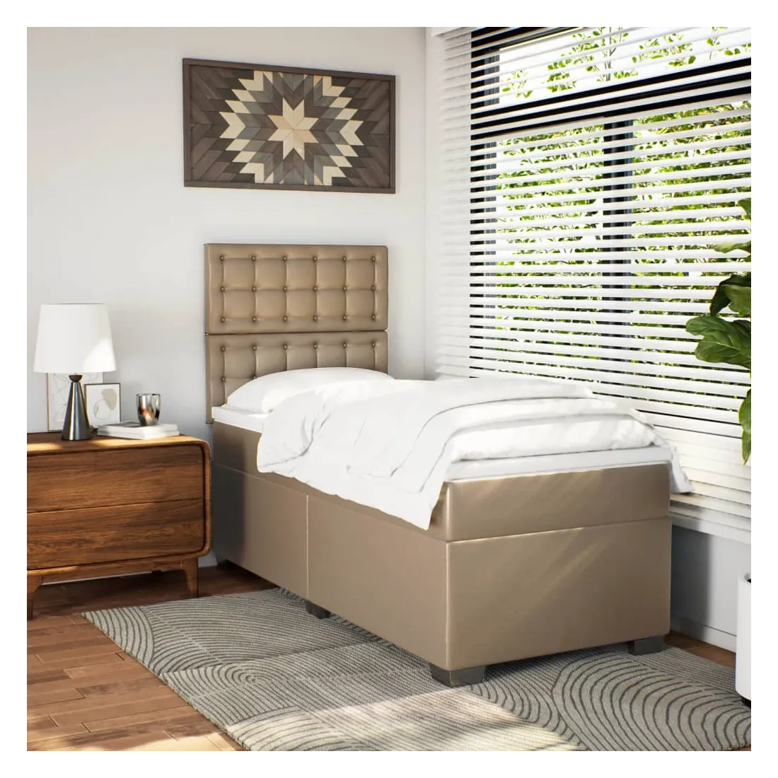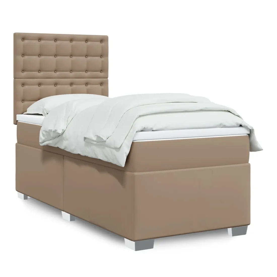 Utilisez ce lit à sommier pour profiter d'une nuit de sommeil réparatrice ! Il vous offre une relaxation maximale et un sommeil agréable. Longue durée de vie et entretien facile : le similicuir est un matériau très durable qui résiste aux taches, ce qui le rend facile à nettoyer avec un chiffon humide. Sa surface lisse lui confère un aspect élégant qui ressemble à celui du cuir véritable.Matelas à ressorts ensachés : ce matelas à ressorts ensachés comporte des ressorts ensachés individuels qui fonctionnent indépendamment pour offrir un soutien personnalisé en réagissant uniquement à la pression exercée dans chaque zone. Cette conception empêche « l'enroulement » et réduit le transfert de mouvement par rapport aux matelas traditionnels à ressorts ouverts. Chaque ressort ensaché soutient le corps individuellement.Tête de lit réglable en hauteur : la tête de lit est réglable en hauteur pour s'adapter à vos préférences.Surmatelas confortable : ce surmatelas améliore le soutien et le confort grâce à sa surface douce et respirante, tout en prolongeant la durée de vie de votre matelas. Sa housse amovible permet un lavage facile, ce qui facilite l'entretien.Lattes pour un soutien optimal : le cadre de lit est complété par des lattes pour offrir un soutien et une respirabilité essentiels à votre matelas. Bon à savoir :Pour des raisons d'hygiène, le matelas ne peut pas être retourné si l'emballage est retiré ou ouvert.