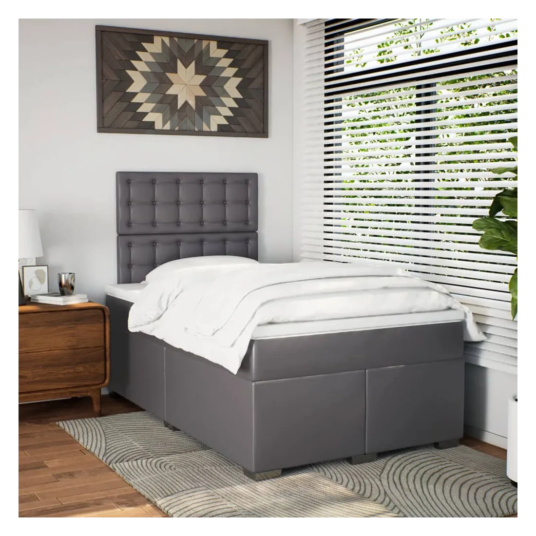 Utilisez ce lit à sommier pour profiter d'une nuit de sommeil réparatrice ! Il vous offre une relaxation maximale et un sommeil agréable. Longue durée de vie et entretien facile : le similicuir est un matériau très durable qui résiste aux taches, ce qui le rend facile à nettoyer avec un chiffon humide. Sa surface lisse lui confère un aspect élégant qui ressemble à celui du cuir véritable.Matelas à ressorts ensachés : ce matelas à ressorts ensachés comporte des ressorts ensachés individuels qui fonctionnent indépendamment pour offrir un soutien personnalisé en réagissant uniquement à la pression exercée dans chaque zone. Cette conception empêche « l'enroulement » et réduit le transfert de mouvement par rapport aux matelas traditionnels à ressorts ouverts. Chaque ressort ensaché soutient le corps individuellement.Tête de lit réglable en hauteur : la tête de lit est réglable en hauteur pour s'adapter à vos préférences.Surmatelas confortable : ce surmatelas améliore le soutien et le confort grâce à sa surface douce et respirante, tout en prolongeant la durée de vie de votre matelas. Sa housse amovible permet un lavage facile, ce qui facilite l'entretien.Lattes pour un soutien optimal : le cadre de lit est complété par des lattes pour offrir un soutien et une respirabilité essentiels à votre matelas. Bon à savoir :Pour des raisons d'hygiène, le matelas ne peut pas être retourné si l'emballage est retiré ou ouvert.