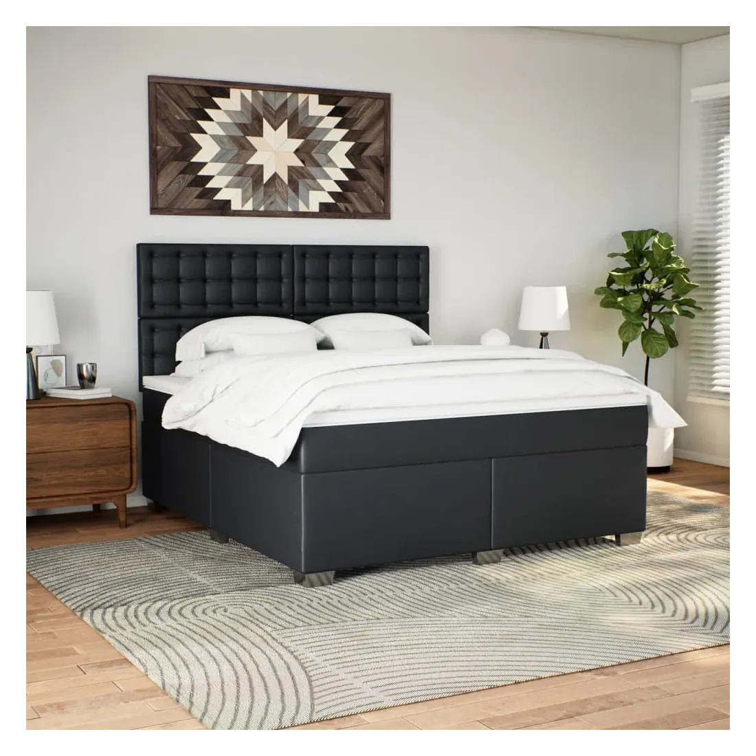Utilisez ce lit à sommier pour profiter d'une nuit de sommeil réparatrice ! Il vous offre une relaxation maximale et un sommeil agréable. Longue durée de vie et entretien facile : le similicuir est un matériau très durable qui résiste aux taches, ce qui le rend facile à nettoyer avec un chiffon humide. Sa surface lisse lui confère un aspect élégant qui ressemble à celui du cuir véritable.Matelas à ressorts ensachés : ce matelas à ressorts ensachés comporte des ressorts ensachés individuels qui fonctionnent indépendamment pour offrir un soutien personnalisé en réagissant uniquement à la pression exercée dans chaque zone. Cette conception empêche « l'enroulement » et réduit le transfert de mouvement par rapport aux matelas traditionnels à ressorts ouverts. Chaque ressort ensaché soutient le corps individuellement.Tête de lit réglable en hauteur : la tête de lit est réglable en hauteur pour s'adapter à vos préférences.Surmatelas confortable : ce surmatelas améliore le soutien et le confort grâce à sa surface douce et respirante, tout en prolongeant la durée de vie de votre matelas. Sa housse amovible permet un lavage facile, ce qui facilite l'entretien.Lattes pour un soutien optimal : le cadre de lit est complété par des lattes pour offrir un soutien et une respirabilité essentiels à votre matelas. Bon à savoir :Pour des raisons d'hygiène, le matelas ne peut pas être retourné si l'emballage est retiré ou ouvert.