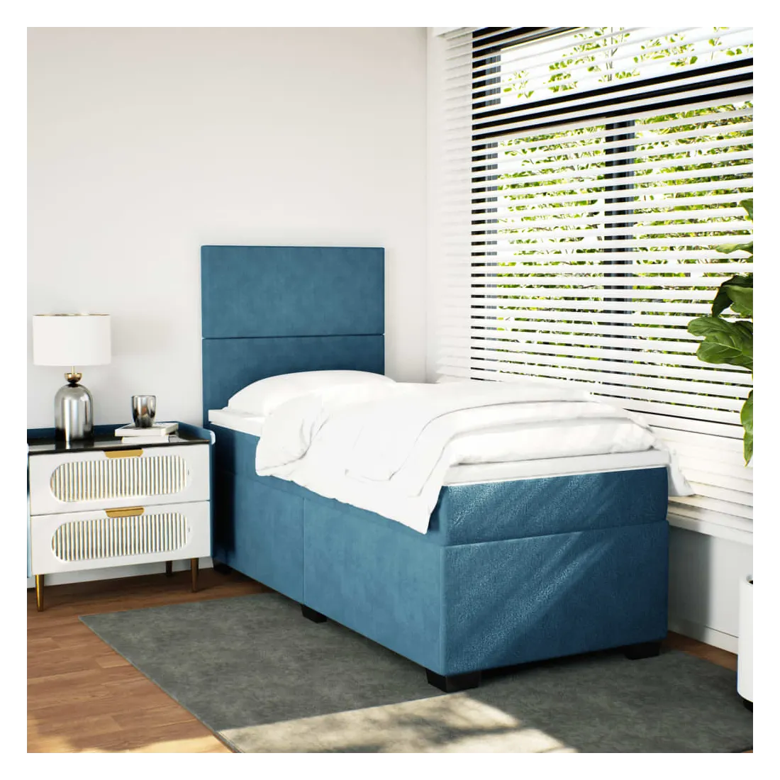 Utilisez ce lit à sommier pour profiter d'une nuit de sommeil réparatrice ! Il vous offre une relaxation maximale et un sommeil agréable. Matériau doux et confortable : le tissu en velours présente une surface douce et lisse qui offre une sensation agréable contre la peau, vous apportant chaleur et confort ultime.Matelas à ressorts ensachés : ce matelas à ressorts ensachés comporte des ressorts ensachés individuels qui fonctionnent indépendamment pour offrir un soutien personnalisé en réagissant uniquement à la pression exercée dans chaque zone. Cette conception empêche « l'enroulement » et réduit le transfert de mouvement par rapport aux matelas traditionnels à ressorts ouverts. Chaque ressort ensaché soutient le corps individuellement.Tête de lit réglable en hauteur : la tête de lit est réglable en hauteur pour s'adapter à vos préférences.Surmatelas confortable : ce surmatelas améliore le soutien et le confort grâce à sa surface douce et respirante, tout en prolongeant la durée de vie de votre matelas. Sa housse amovible permet un lavage facile, ce qui facilite l'entretien.Lattes pour un soutien optimal : le cadre de lit est complété par des lattes pour offrir un soutien et une respirabilité essentiels à votre matelas. Bon à savoir :Pour des raisons d'hygiène, le matelas ne peut pas être retourné si l'emballage est retiré ou ouvert.