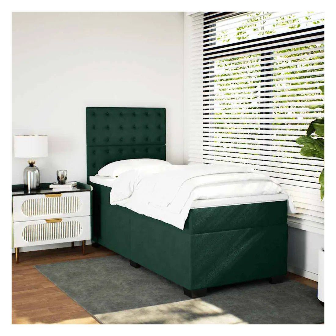 Utilisez ce lit à sommier pour profiter d'une nuit de sommeil réparatrice ! Il vous offre une relaxation maximale et un sommeil agréable. Matériau doux et confortable : le tissu en velours présente une surface douce et lisse qui offre une sensation agréable contre la peau, vous apportant chaleur et confort ultime.Matelas à ressorts ensachés : ce matelas à ressorts ensachés comporte des ressorts ensachés individuels qui fonctionnent indépendamment pour offrir un soutien personnalisé en réagissant uniquement à la pression exercée dans chaque zone. Cette conception empêche « l'enroulement » et réduit le transfert de mouvement par rapport aux matelas traditionnels à ressorts ouverts. Chaque ressort ensaché soutient le corps individuellement.Tête de lit réglable en hauteur : la tête de lit est réglable en hauteur pour s'adapter à vos préférences.Surmatelas confortable : ce surmatelas améliore le soutien et le confort grâce à sa surface douce et respirante, tout en prolongeant la durée de vie de votre matelas. Sa housse amovible permet un lavage facile, ce qui facilite l'entretien.Lattes pour un soutien optimal : le cadre de lit est complété par des lattes pour offrir un soutien et une respirabilité essentiels à votre matelas. Bon à savoir :Pour des raisons d'hygiène, le matelas ne peut pas être retourné si l'emballage est retiré ou ouvert.