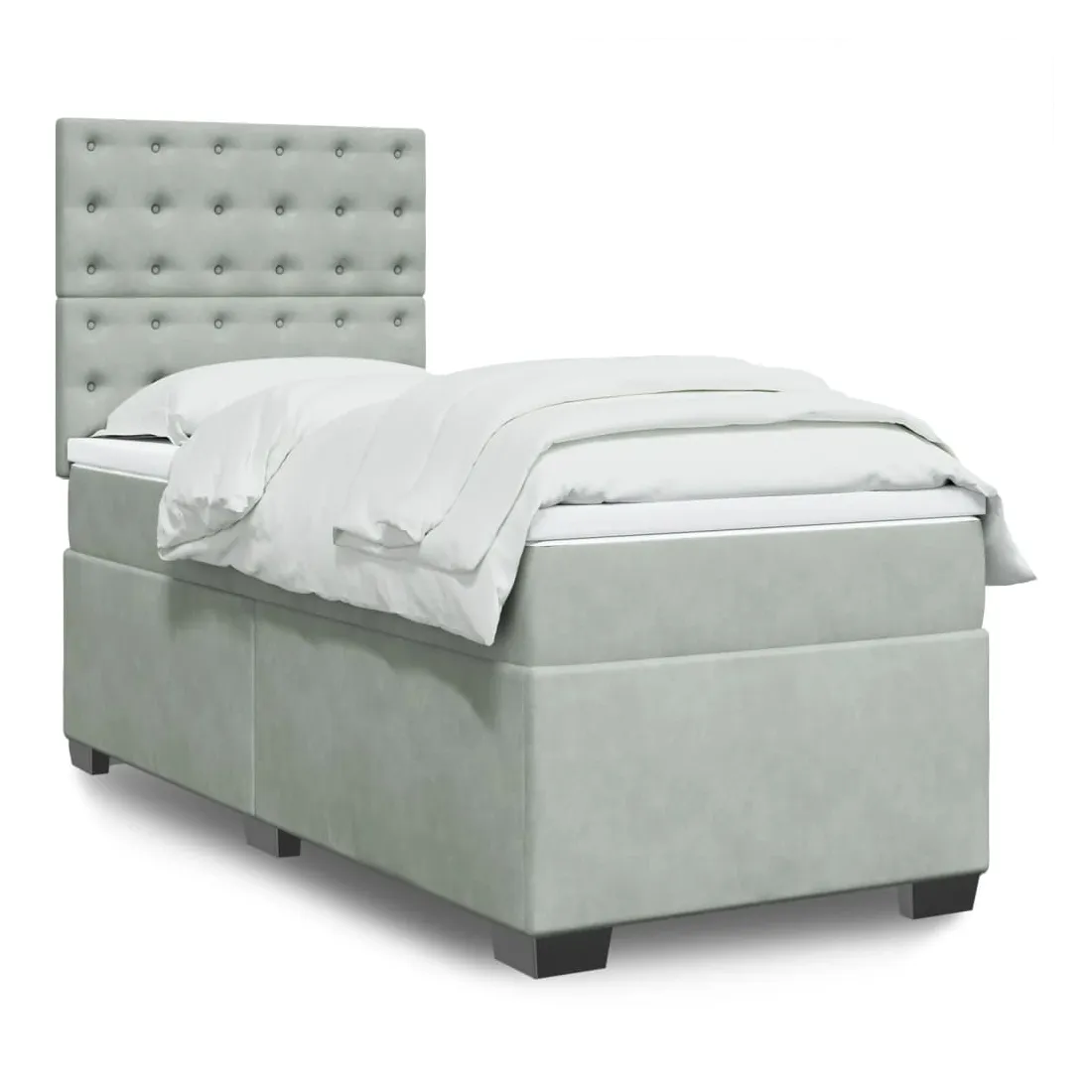 Utilisez ce lit à sommier pour profiter d'une nuit de sommeil réparatrice ! Il vous offre une relaxation maximale et un sommeil agréable. Matériau doux et confortable : le tissu en velours présente une surface douce et lisse qui offre une sensation agréable contre la peau, vous apportant chaleur et confort ultime.Matelas à ressorts ensachés : ce matelas à ressorts ensachés comporte des ressorts ensachés individuels qui fonctionnent indépendamment pour offrir un soutien personnalisé en réagissant uniquement à la pression exercée dans chaque zone. Cette conception empêche « l'enroulement » et réduit le transfert de mouvement par rapport aux matelas traditionnels à ressorts ouverts. Chaque ressort ensaché soutient le corps individuellement.Tête de lit réglable en hauteur : la tête de lit est réglable en hauteur pour s'adapter à vos préférences.Surmatelas confortable : ce surmatelas améliore le soutien et le confort grâce à sa surface douce et respirante, tout en prolongeant la durée de vie de votre matelas. Sa housse amovible permet un lavage facile, ce qui facilite l'entretien.Lattes pour un soutien optimal : le cadre de lit est complété par des lattes pour offrir un soutien et une respirabilité essentiels à votre matelas. Bon à savoir :Pour des raisons d'hygiène, le matelas ne peut pas être retourné si l'emballage est retiré ou ouvert.