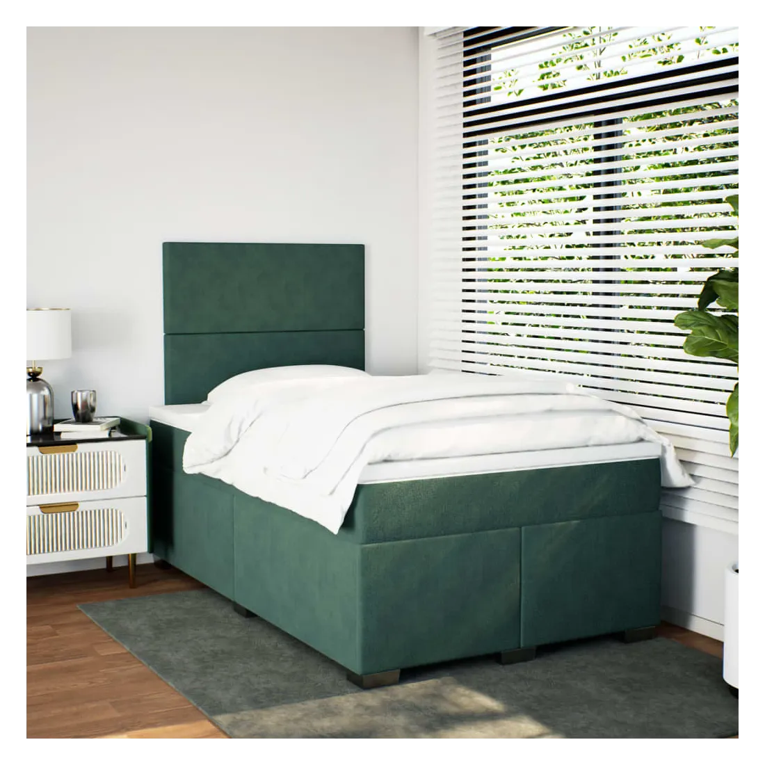 Utilisez ce lit à sommier pour profiter d'une nuit de sommeil réparatrice ! Il vous offre une relaxation maximale et un sommeil agréable. Matériau doux et confortable : le tissu en velours présente une surface douce et lisse qui offre une sensation agréable contre la peau, vous apportant chaleur et confort ultime.Matelas à ressorts ensachés : ce matelas à ressorts ensachés comporte des ressorts ensachés individuels qui fonctionnent indépendamment pour offrir un soutien personnalisé en réagissant uniquement à la pression exercée dans chaque zone. Cette conception empêche « l'enroulement » et réduit le transfert de mouvement par rapport aux matelas traditionnels à ressorts ouverts. Chaque ressort ensaché soutient le corps individuellement.Tête de lit réglable en hauteur : la tête de lit est réglable en hauteur pour s'adapter à vos préférences.Surmatelas confortable : ce surmatelas améliore le soutien et le confort grâce à sa surface douce et respirante, tout en prolongeant la durée de vie de votre matelas. Sa housse amovible permet un lavage facile, ce qui facilite l'entretien.Lattes pour un soutien optimal : le cadre de lit est complété par des lattes pour offrir un soutien et une respirabilité essentiels à votre matelas. Bon à savoir :Pour des raisons d'hygiène, le matelas ne peut pas être retourné si l'emballage est retiré ou ouvert.