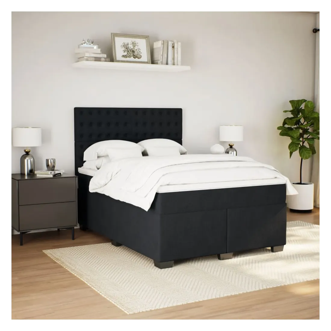 Sommier à lattes de lit et matelas Noir 160x200 cm Velours