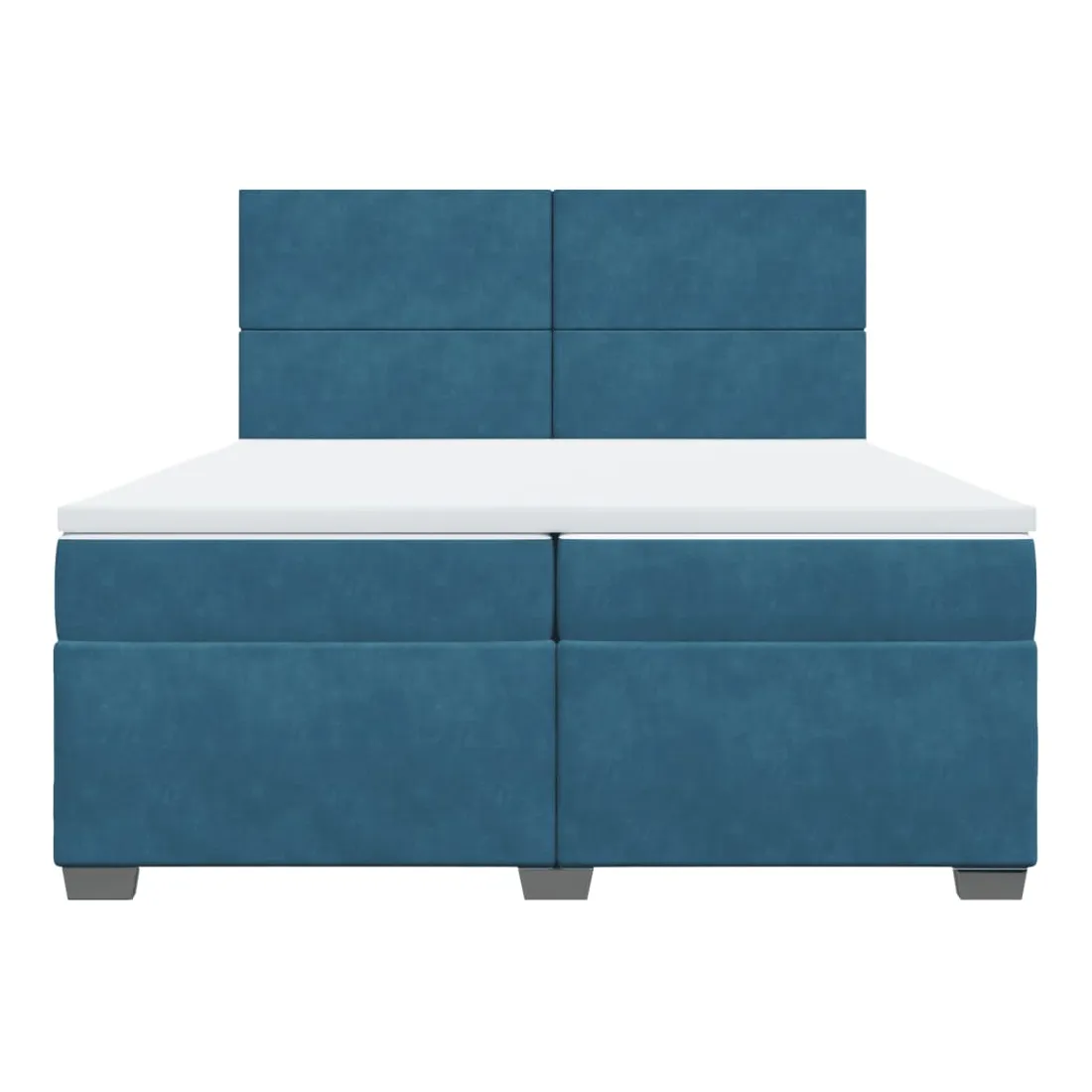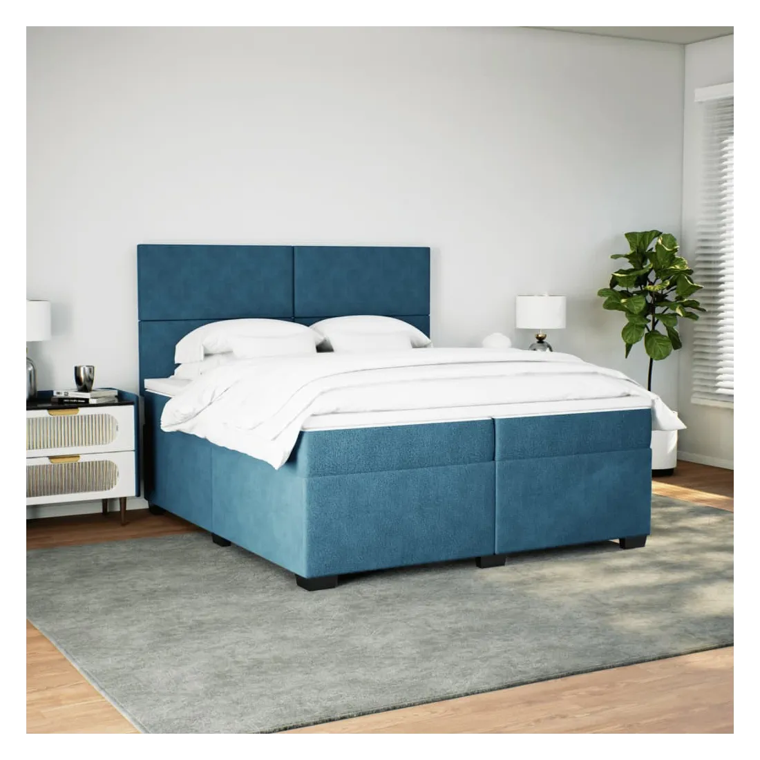 Sommier à lattes de lit et matelas Bleu 200x200 cm velours