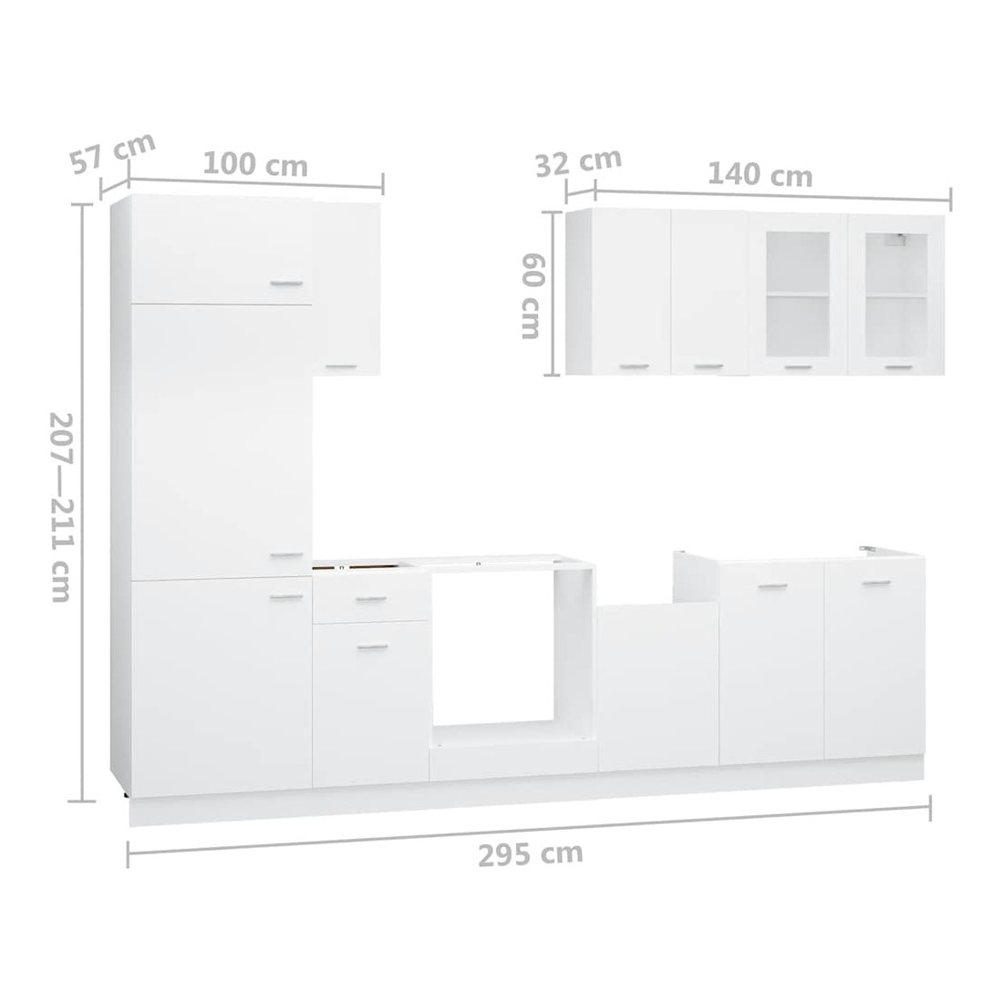 Ensemble de 8 meubles de cuisine "Lyon" en bois d'ingénierie blanc