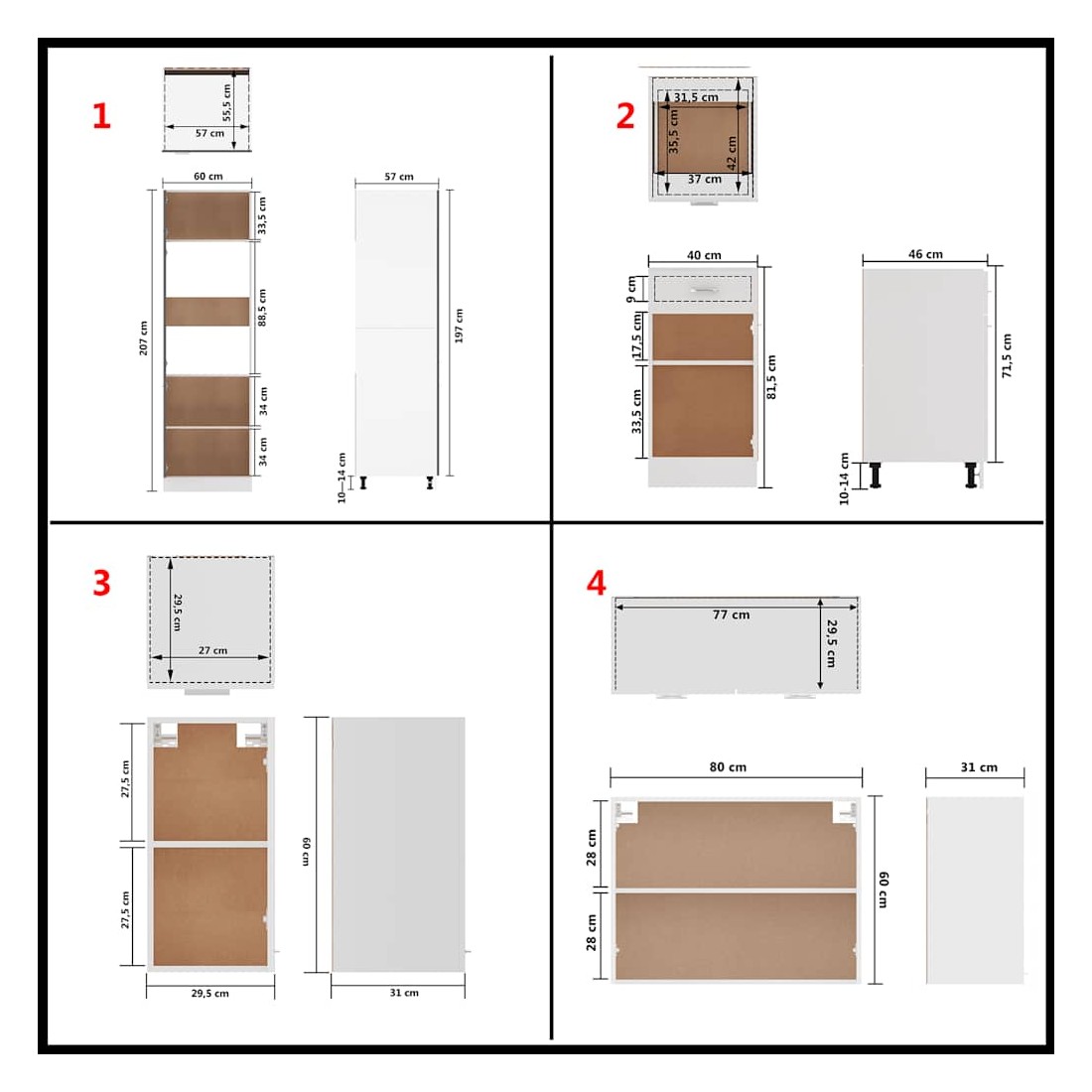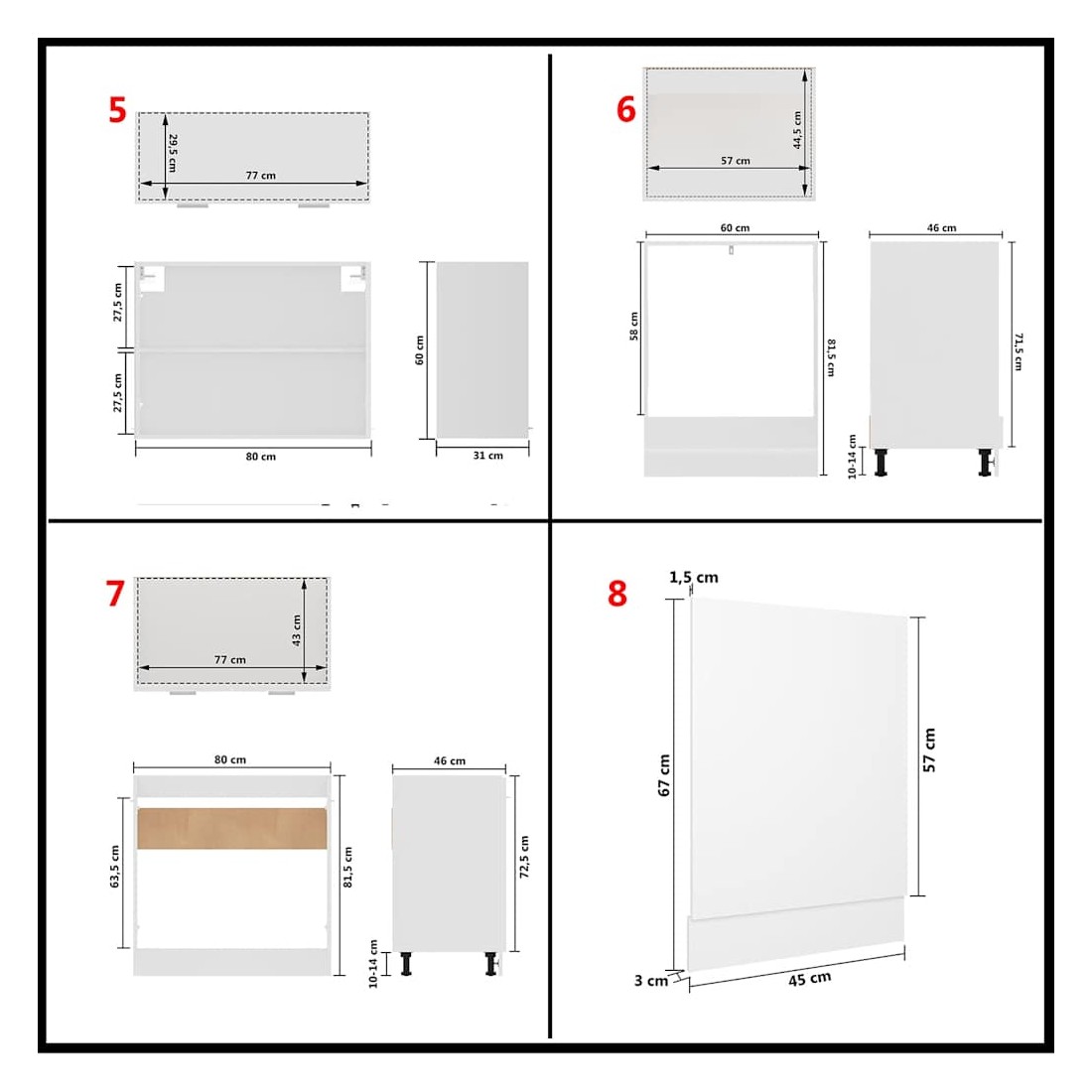 Cet ensemble de 8 meubles de cuisine, au design élégant, optimise l'espace de votre cuisine et offre un vaste espace de rangement pour vos effets personnels ! Ces meubles sont durables et fonctionnels, et vous permettent de mieux organiser votre cuisine. Ils offrent également suffisamment d'espace pour ranger bols, assiettes, casseroles et autres ustensiles de cuisine. Le panneau du lave-vaisselle présente un design simple et permet de protéger le lave-vaisselle. De plus, cet ensemble est facile à nettoyer à l'aide d'un chiffon humide. Remarque : le plan de travail, le robinet, l'évier et les appareils électriques ne sont pas inclus dans la livraison. Avertissement : ce produit doit être sécurisé en installant un plan de travail.