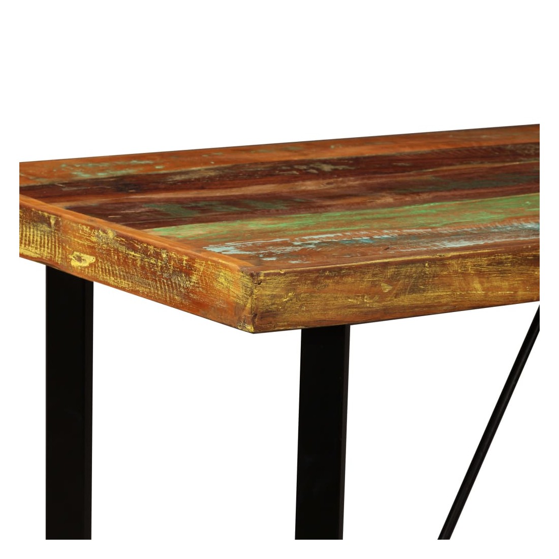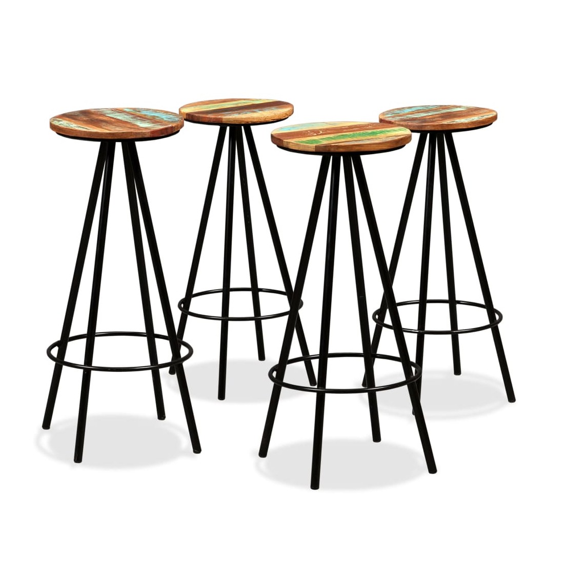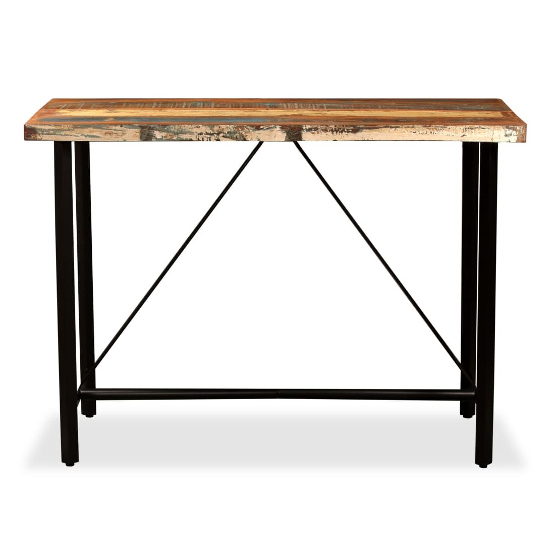 Cet ensemble de bar cool a un style industriel et sera un supplément distinctif à n'importe quelle maison, bar ou restaurant. La table de bar est fait de bois de récupération massif, ce qui signifie qu'il a les caractéristiques de différents bois comme le teck, le bois de manguier, l'acacia, etc. Le bois récupéré est solide, stable, durable et beau. Les signes d'usure donnent à chaque pièce un aspect unique et les pieds en acier s'ajoutent au style industriel spectaculaire. Chaque étape du processus de construction est réalisée avec le plus grand soin, que ce soit la recombinaison, le polissage, la peinture ou le laquage. La livraison comprend 1 table de bar et 4 tabourets de bar. L'assemblage est facile. Remarque importante : Les grains et les couleurs du bois peuvent varier d'une piè