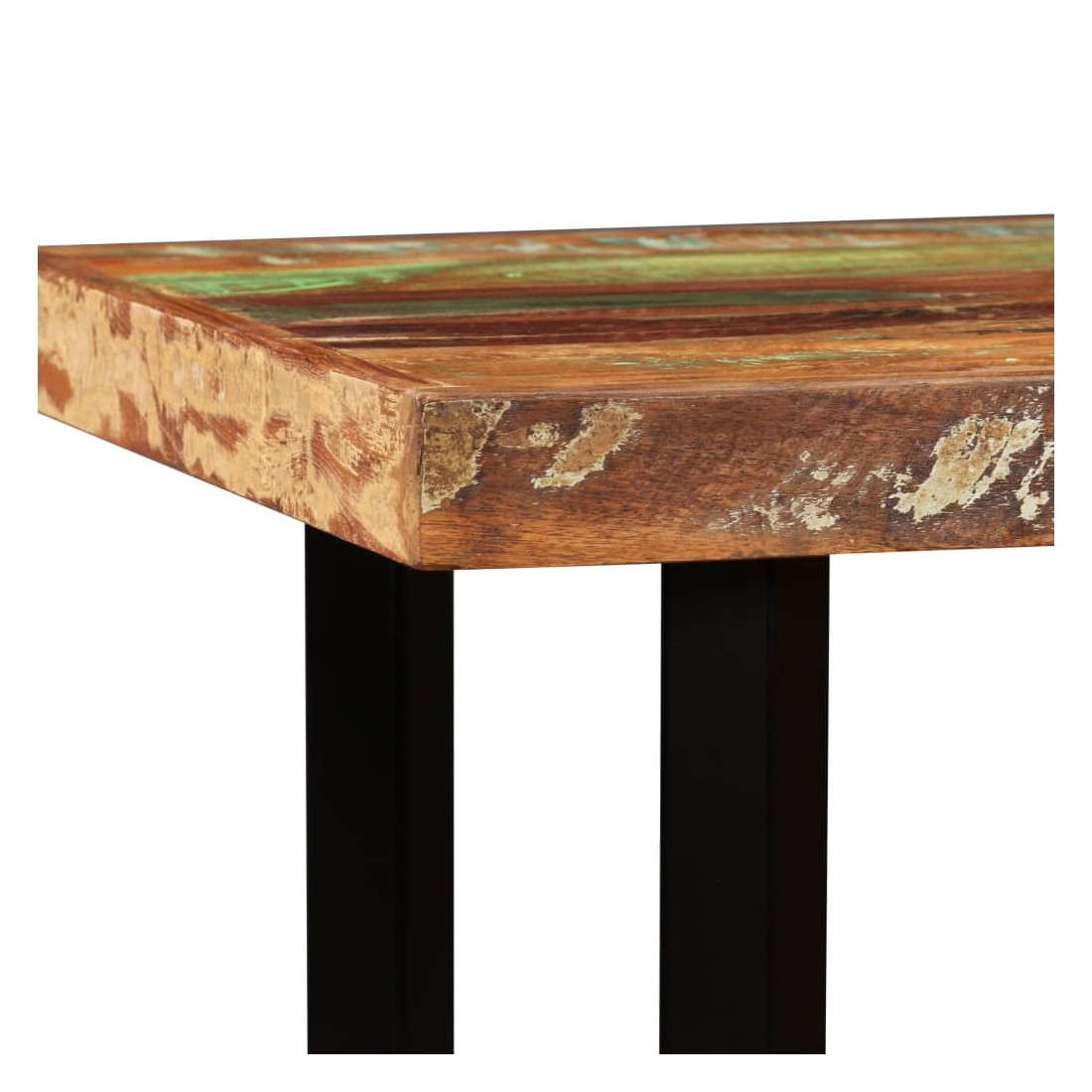 Cet ensemble de bar cool a un style industriel et sera un supplément distinctif à n'importe quelle maison, bar ou restaurant. La table de bar est fait de bois de récupération massif, ce qui signifie qu'il a les caractéristiques de différents bois comme le teck, le bois de manguier, l'acacia, etc. Le bois récupéré est solide, stable, durable et beau. Les signes d'usure donnent à chaque pièce un aspect unique et les pieds en acier s'ajoutent au style industriel spectaculaire. Chaque étape du processus de construction est réalisée avec le plus grand soin, que ce soit la recombinaison, le polissage, la peinture ou le laquage. La livraison comprend 1 table de bar et 4 tabourets de bar. L'assemblage est facile. Remarque importante : Les grains et les couleurs du bois peuvent varier d'une pièce à l'autre, ce qui rend chaque pièce unique et légèrement différente de la suivante ; la livraison est aléatoire.
