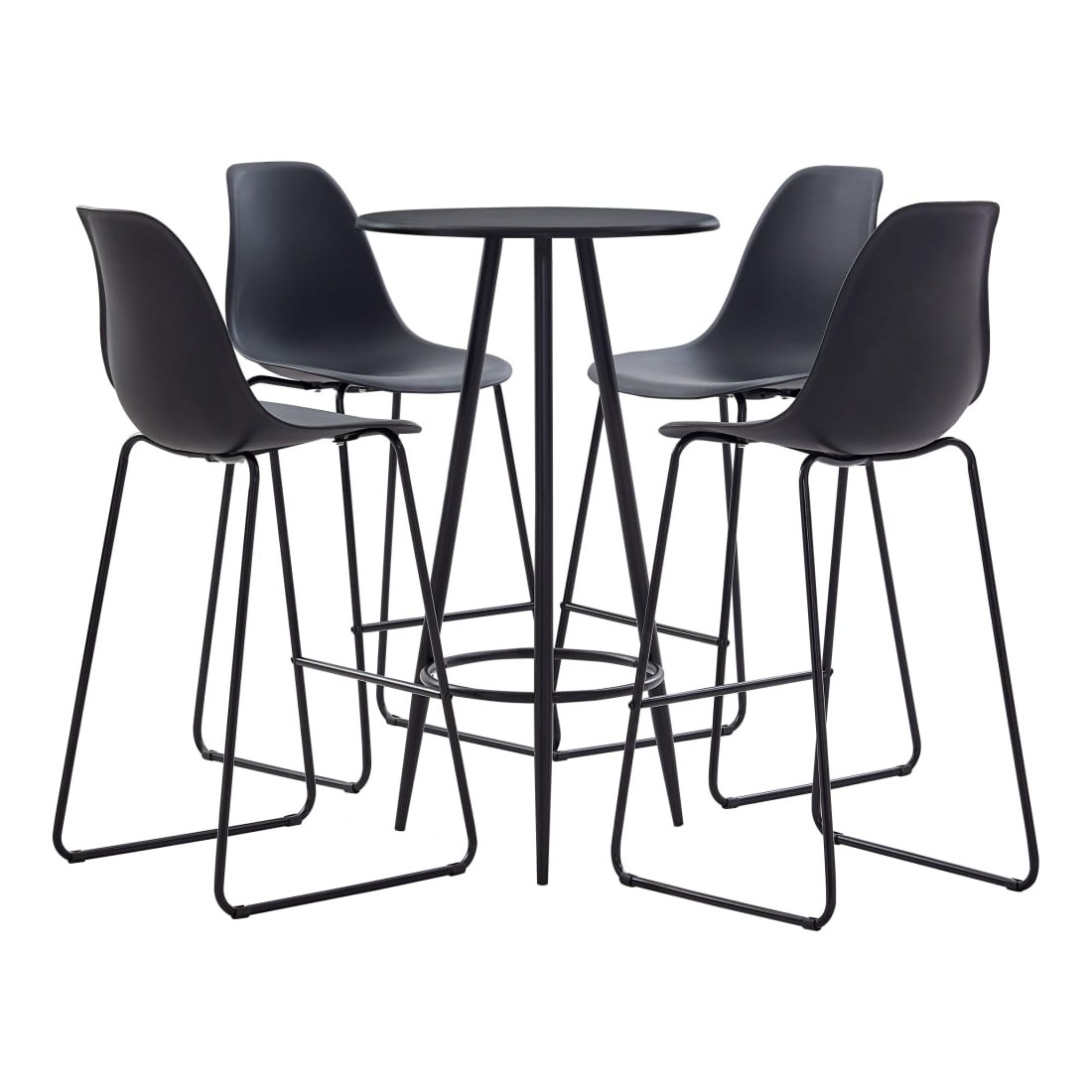 Avec un design moderne et contemporain, notre ensemble de bar est idéal pour les maisons, jardins, bars, pubs ou restaurants modernes. Son design épuré et contemporain complétera toute décoration intérieure. Le dessus de table est en MDF qui est facile à nettoyer. Le cadre en acier enduit de poudre ajoute à la stabilité et à la solidité de la table de bar. Les chaises de bar ont une assise ergonomique avec dossier intégré dans un look moderne et courbé. De plus, elles sont faciles à monter. Notre ensemble de bar est idéal pour savourer un verre de vin au bar, manger quelque chose au comptoir ou pour l'utiliser comme siège supplémentaire lorsque vous avez des invités. La livraison comprend une table de bar et 4 chaises de bar.