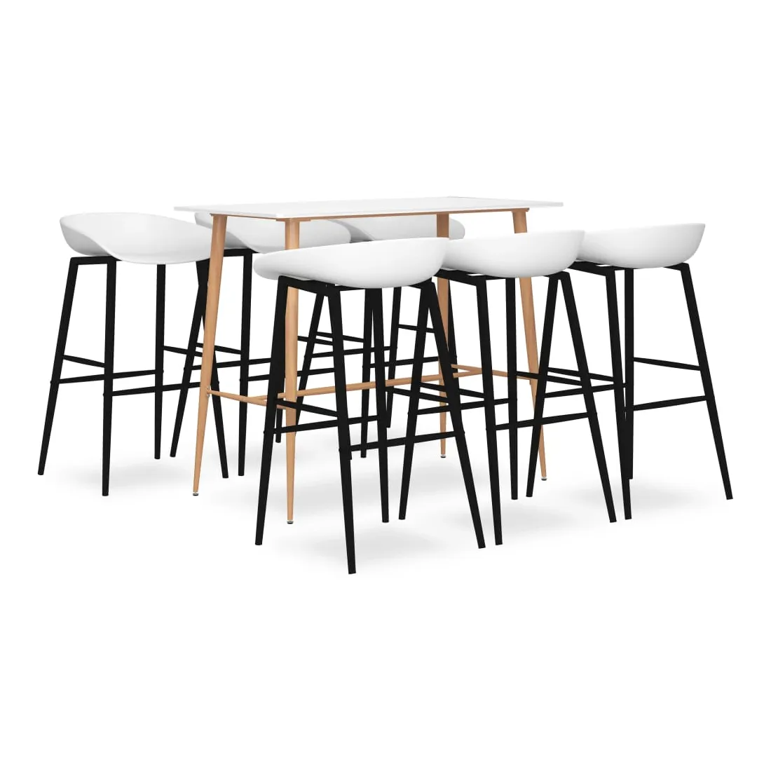 Avec un design moderne et contemporain, notre ensemble de bar est idéal pour les maisons, jardins, bars, pubs ou restaurants modernes. Son design épuré et contemporain complétera toute décoration intérieure. Notre table de comptoir dispose d’un dessus en MDF durable et de solides pieds en métal avec un aspect de bois. Ces tabourets de pub ont un siège ergonomique avec un dossier bas intégré. Fabriquées en PP robuste et soutenues par des solides pieds en métal enduit de poudre, ces chaises de comptoir sont robustes et durables.