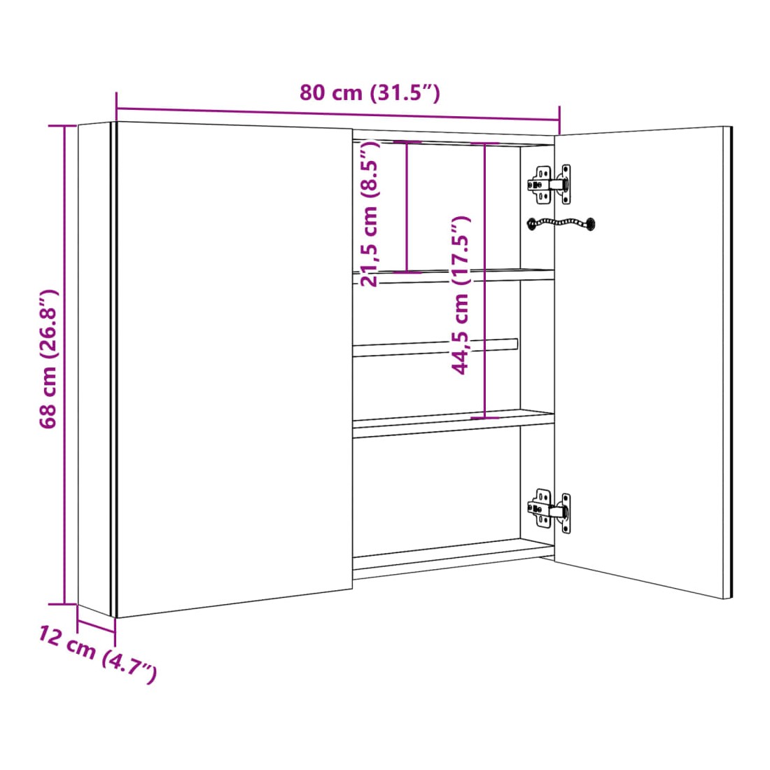 Armoire de salle de bain à miroir LED 80x12,2x68 cm