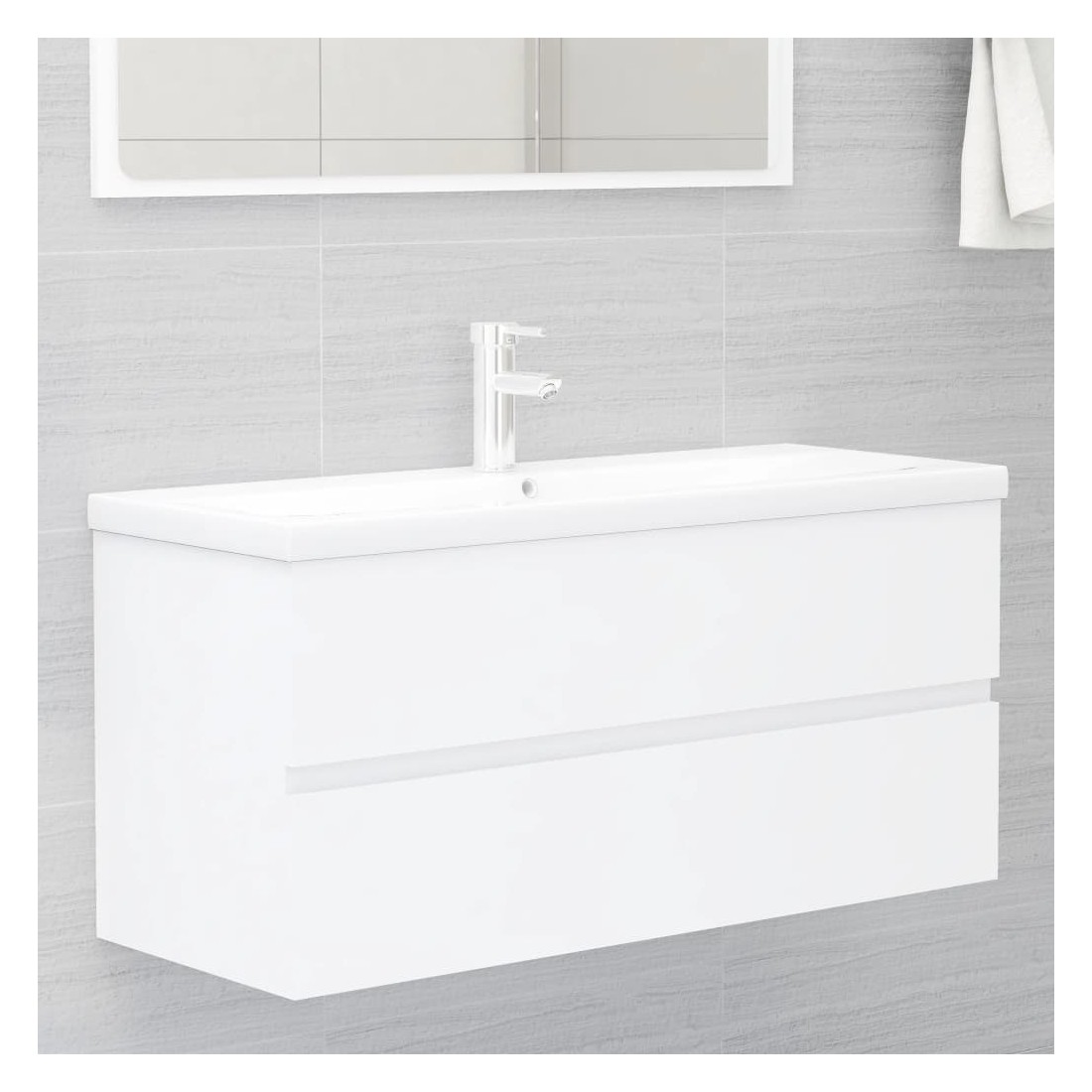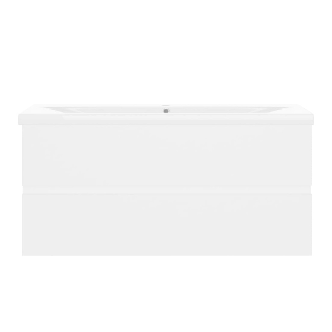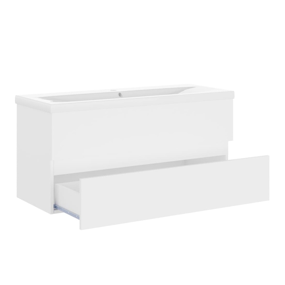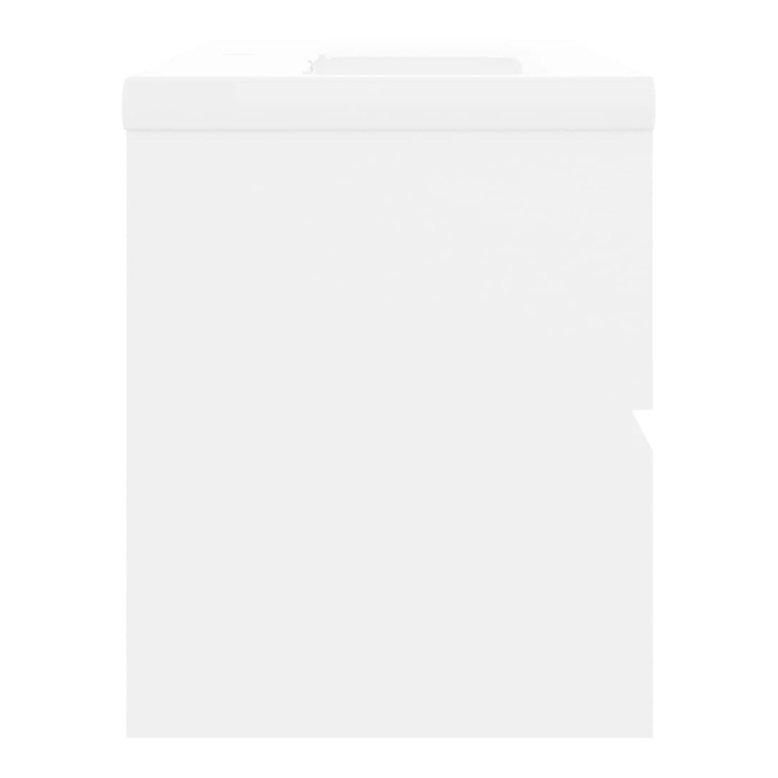 Cette armoire d'évier avec lavabo intégré s'agence parfaitement à votre salle de bain ou toilette avec un aspect saisissant et bien rangé. L'armoire de rangement comprend 1 tiroir, offrant un espace de rangement suffisant pour ranger les objets de votre salle de bain. Elle s'intègre parfaitement sous l'évier et rend le rangement de la salle de bain très pratique. Fabriqué en céramique, le lavabo peut non seulement servir de récipient pour un usage quotidien, mais également d'ornement dans votre espace de vie. Grâce à son design avant-gardiste et contemporain, ce lavabo s'adaptera à n'importe quel décor. Un trop-plein est également équipé pour vidanger l'eau lorsqu'il est trop plein. Sa surface vitrée lui confère un design à la fois moderne et élégant. De plus, l'armoire et le lavabo sont faciles à nettoyer avec un chiffon humide. Veuillez noter que le robinet et le drain ne sont pas inclus dans la livraison.