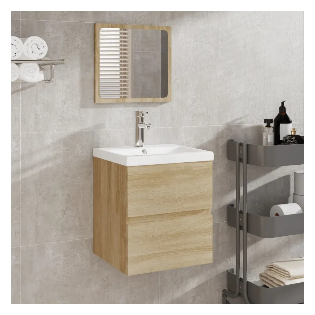 Armoire lavabo de salle de bain bassin et miroir Chêne sonoma