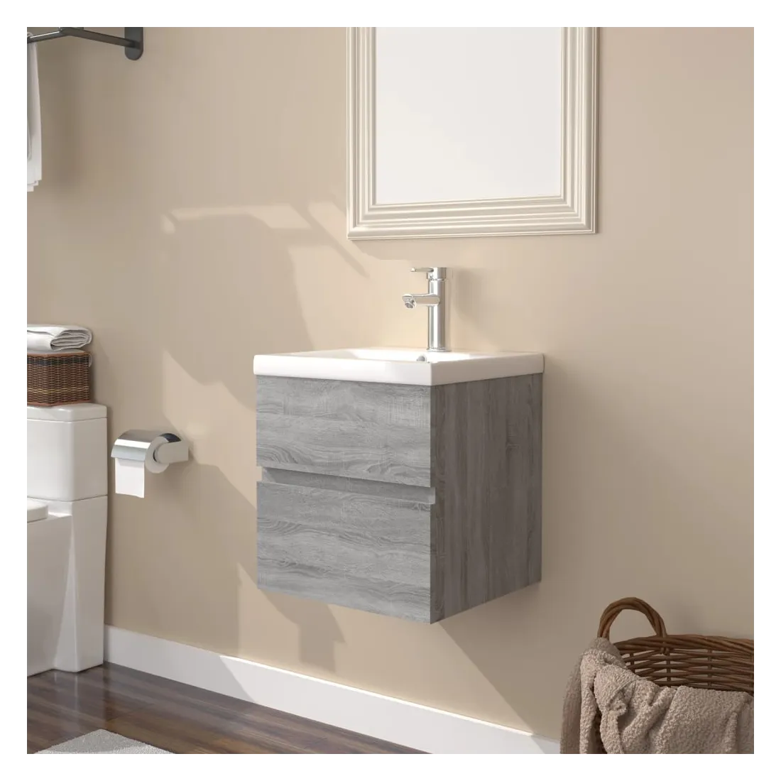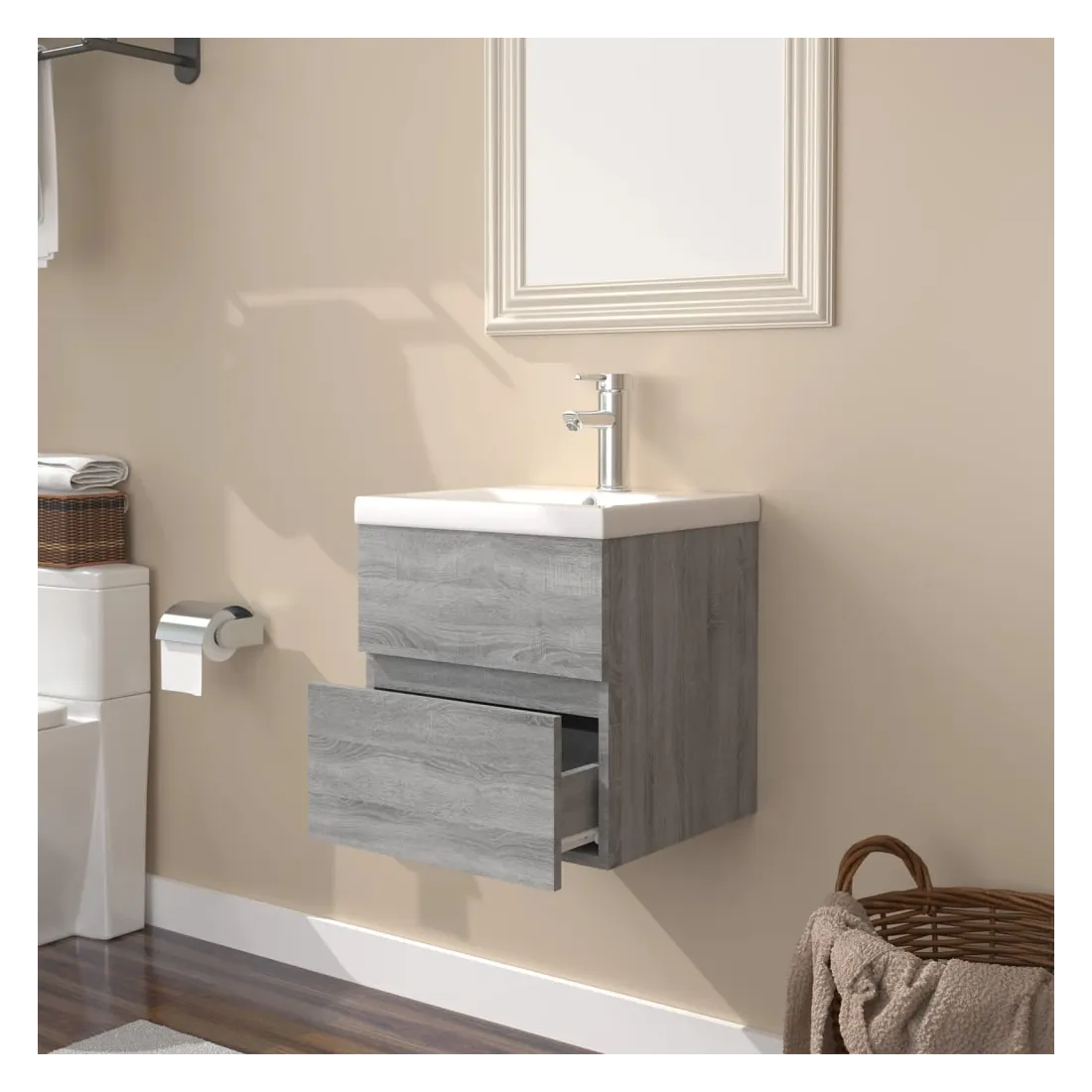 Meuble lavabo avec bassin intégré Sonoma gris Bois d'ingénierie