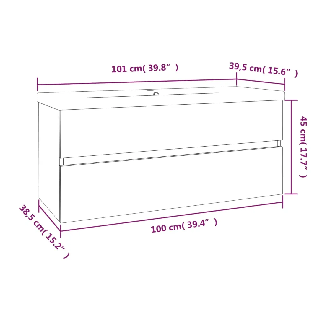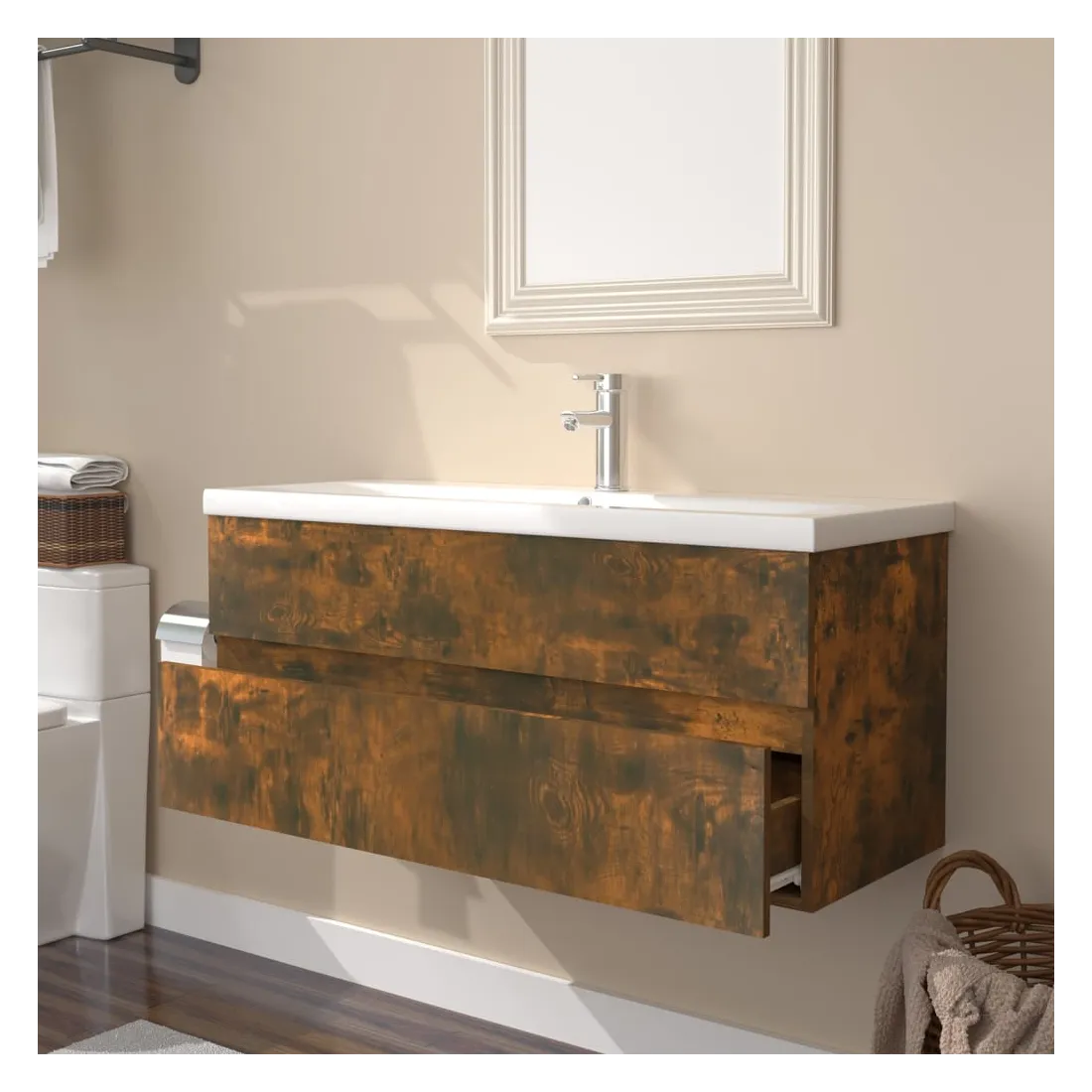 Cet élégant meuble-lavabo avec bassin intégré, avec un espace de rangement spacieux, est un excellent supplément à votre salle de bain, ce qui lui donne une apparence ordonnée et saisissante ! Matériau robuste : le meuble sous évier est fabriqué en bois d'ingénierie, qui est d'une qualité exceptionnelle avec une surface lisse et se caractérise également par sa solidité, stabilité et résistance à l'humidité.Grand espace de rangement : le meuble lavabo de salle de bain dispose d'un tiroir, offrant un grand espace de rangement pour ranger des articles dans votre salle de bain.Design pratique : le dessus de ce meuble de salle de bain est idéal pour placer le lavabo.Fonction murale : l'armoire de salle de bain peut être fixée au mur pour ajouter de l'espace de stockage supplémentaire. De cette façon, vous pouvez maximiser votre espace au sol et garder la zone propre.Fonction de trop-plein : un trop-plein est également équipé pour vidanger l'eau lorsqu'il est trop plein. Remarque :Les vis et les chevilles pour l'intérieur du mur ne sont pas incluses. Recherchez et utilisez des vis et des chevilles adaptées à vos murs. Si vous n'êtes pas sûr, demandez conseil à un professionnel. Lisez et suivez attentivement chaque étape des instructions.Le robinet et le vidange ne sont pas inclus dans la livraison.Chaque produit est livré avec un manuel de montage dans la boîte pour un montage facile.